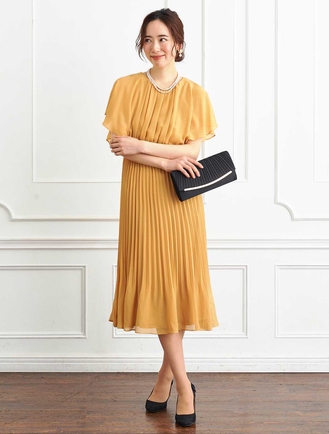 ■脚長効果抜群のプリーツスカートが印象的なロングドレスです。