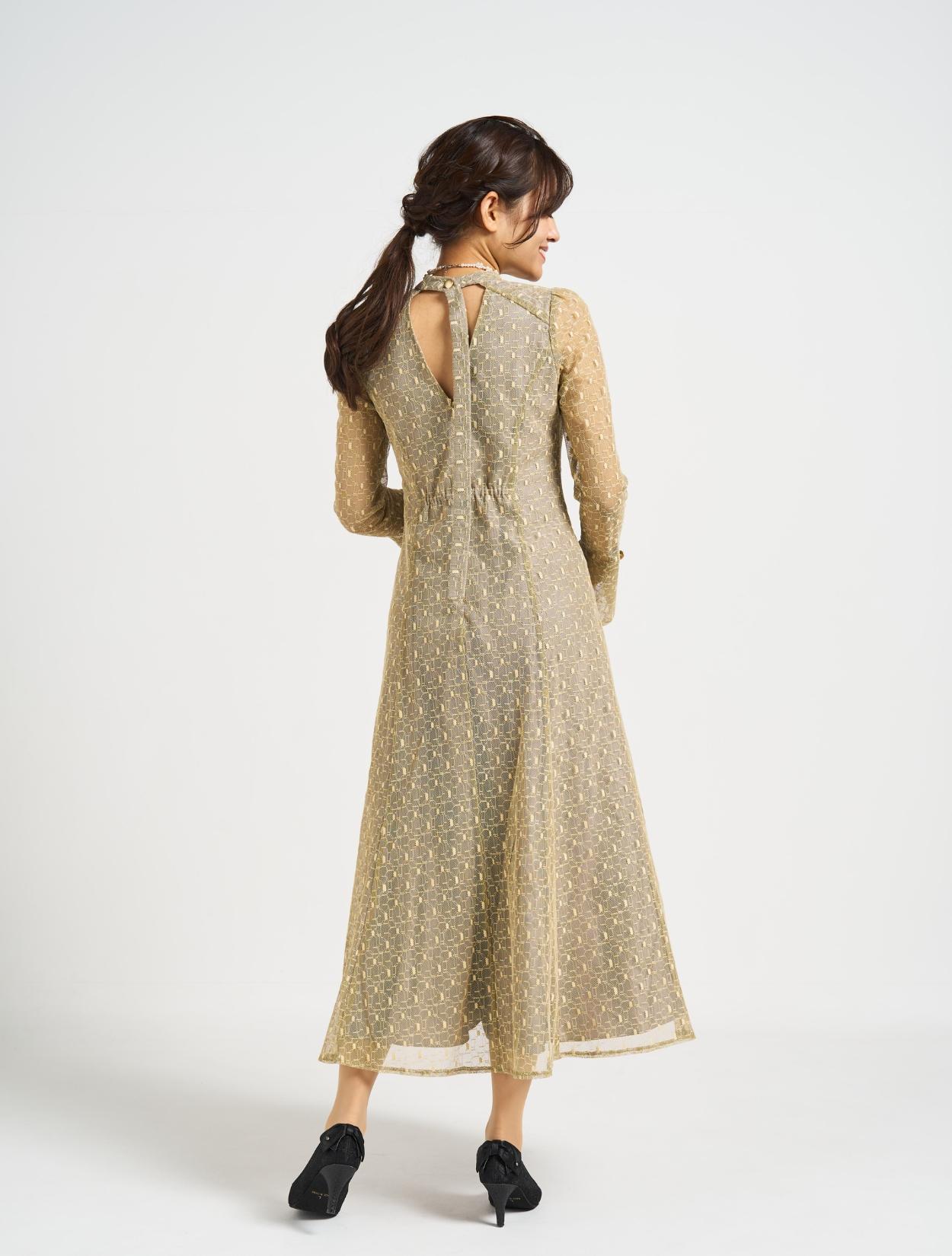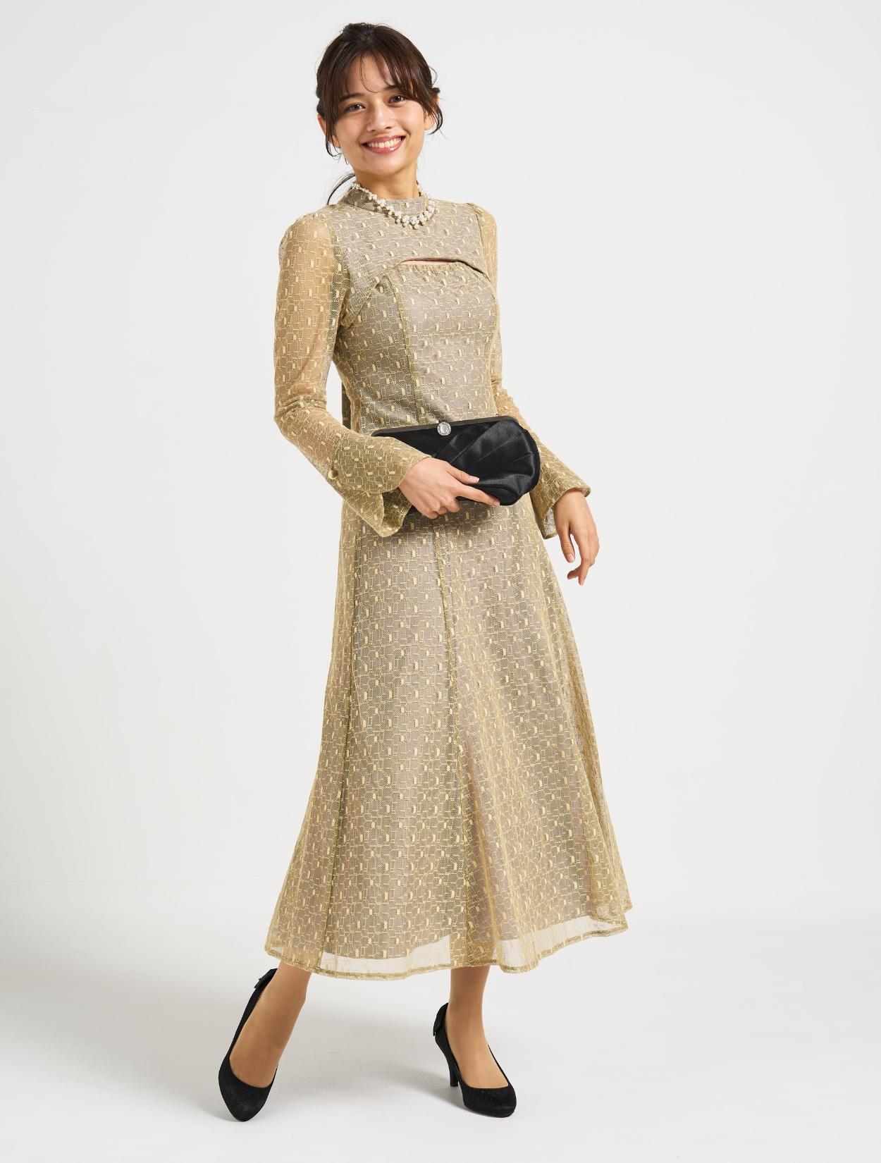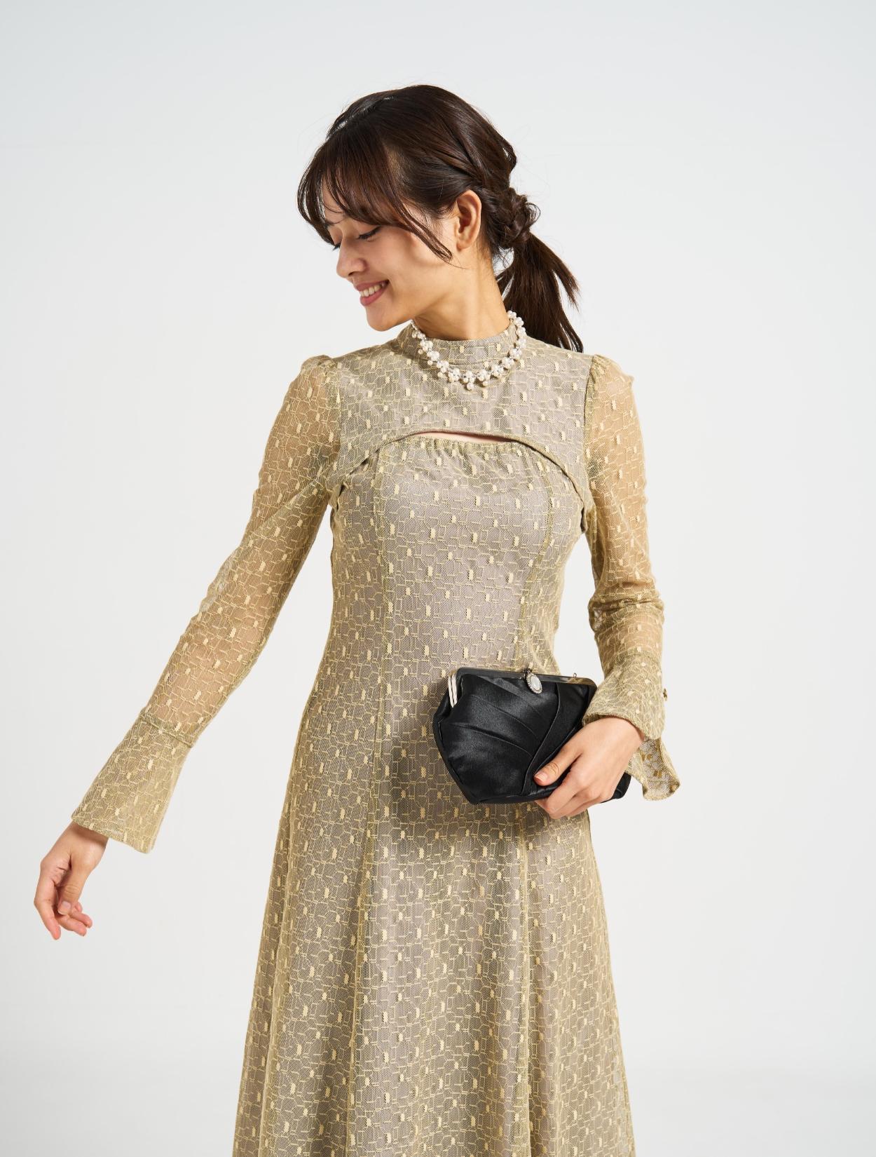 ■幾何学柄のチュールレースが珍しく、エレガントで上品な印象に!