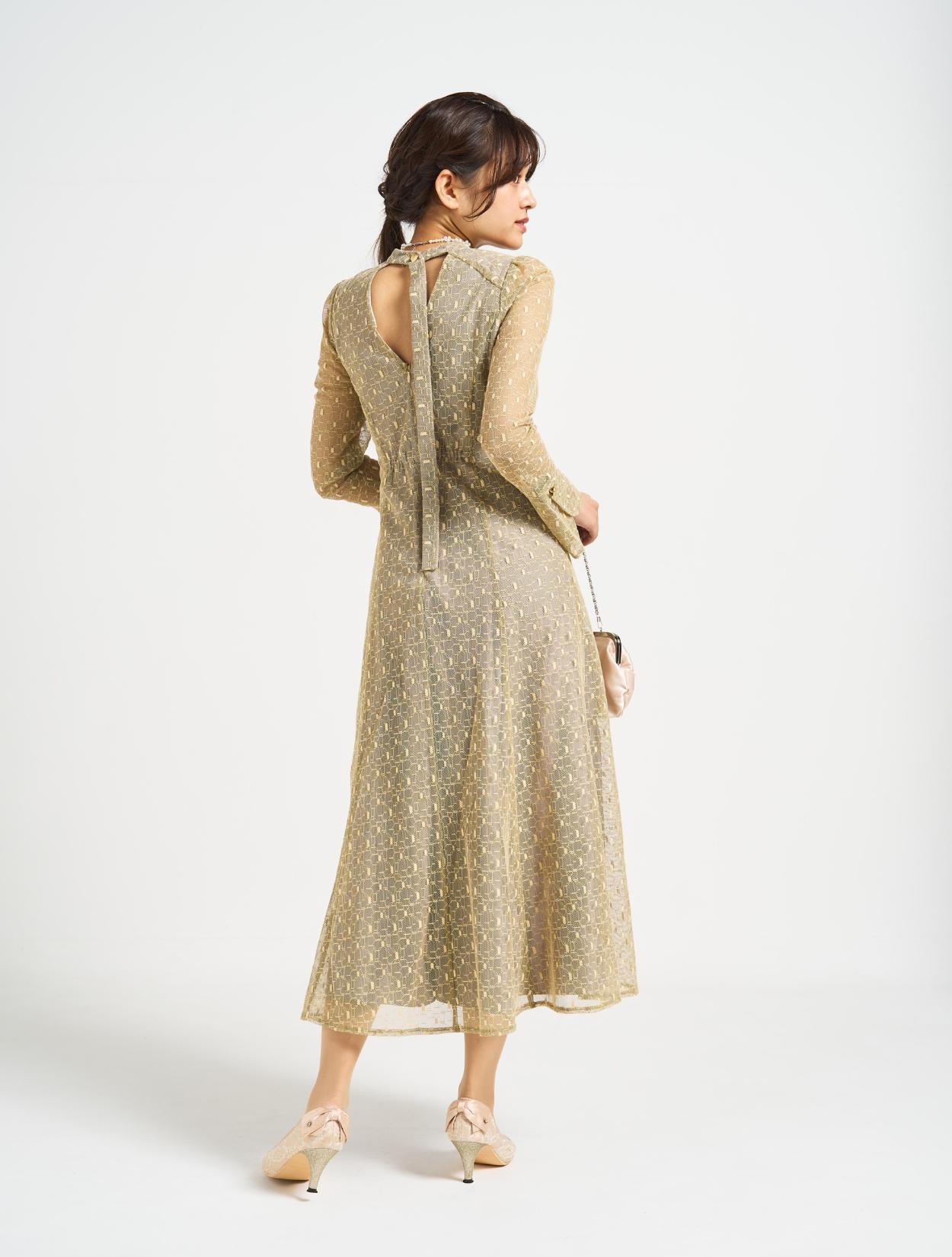 ■幾何学柄のチュールレースが珍しく、エレガントで上品な印象に!