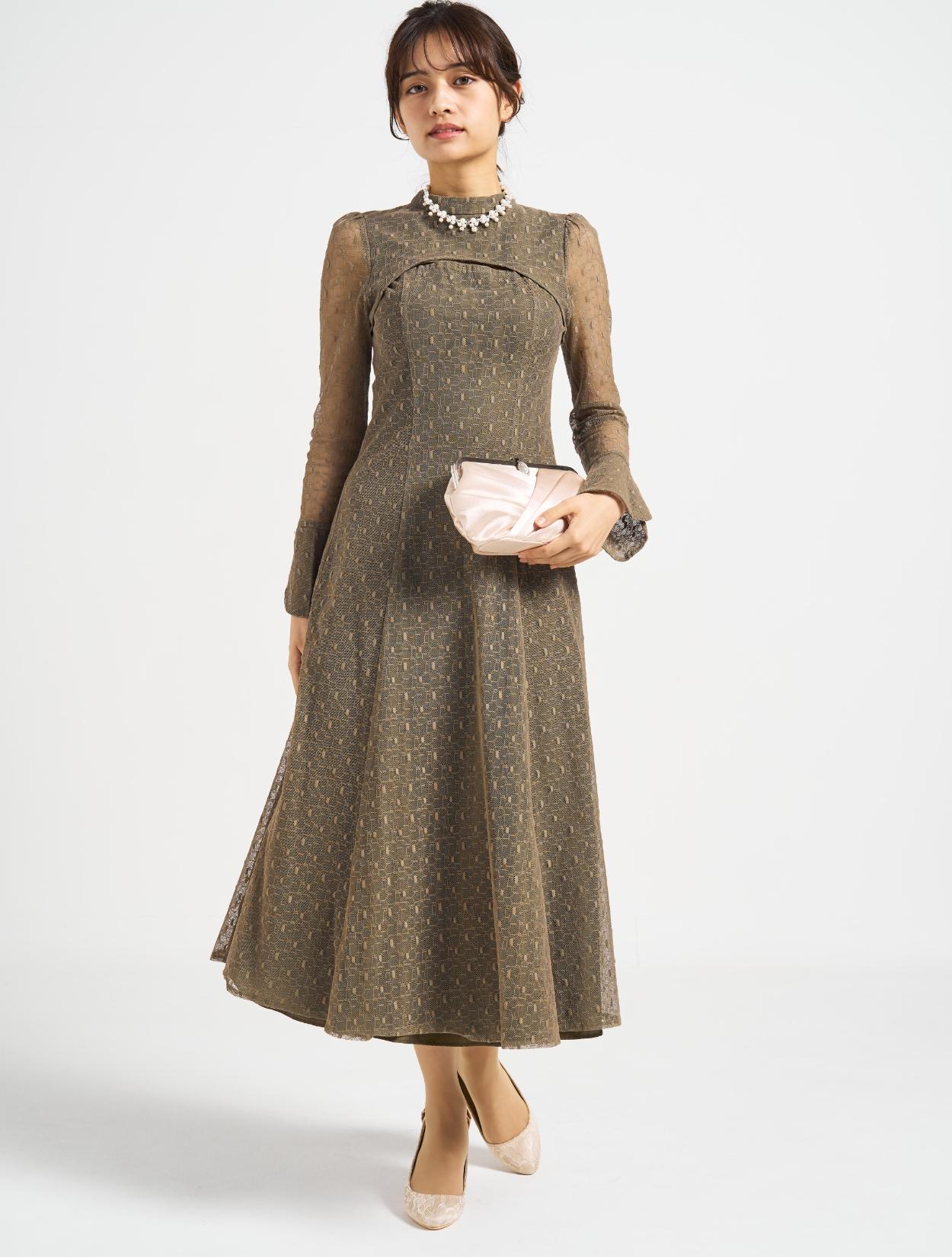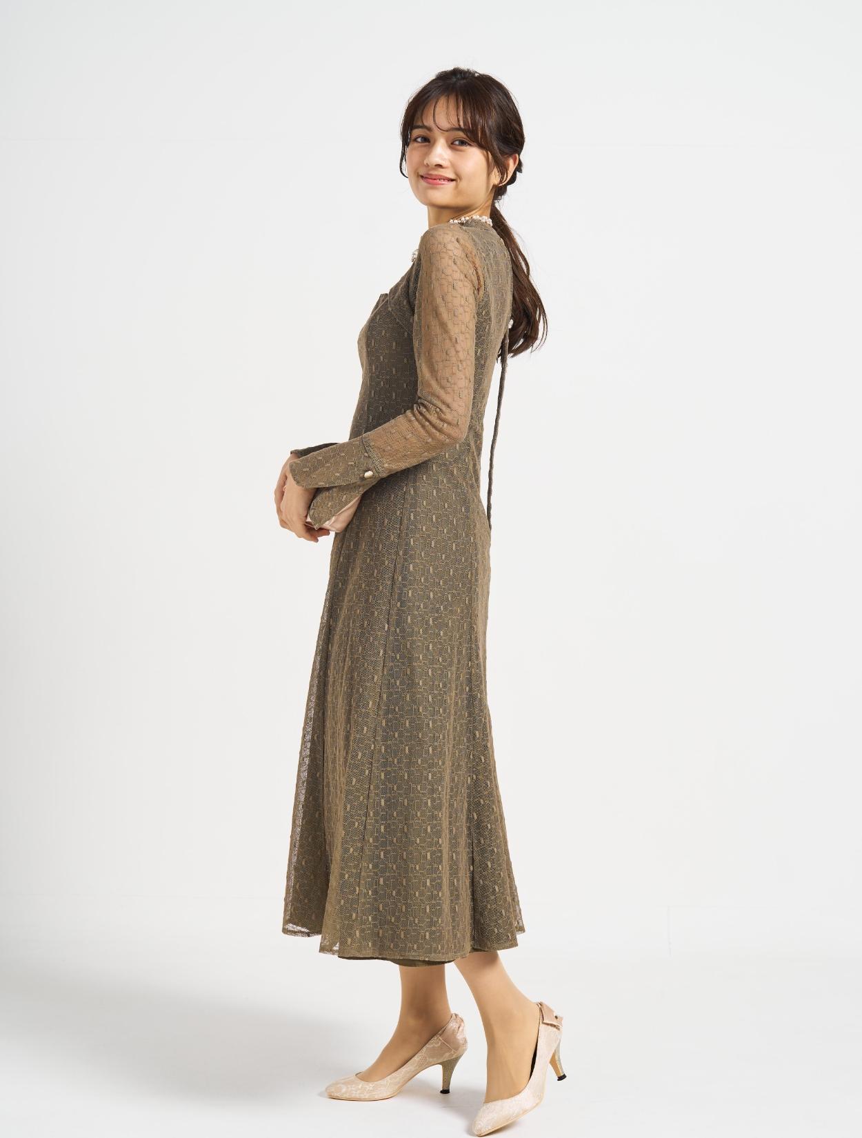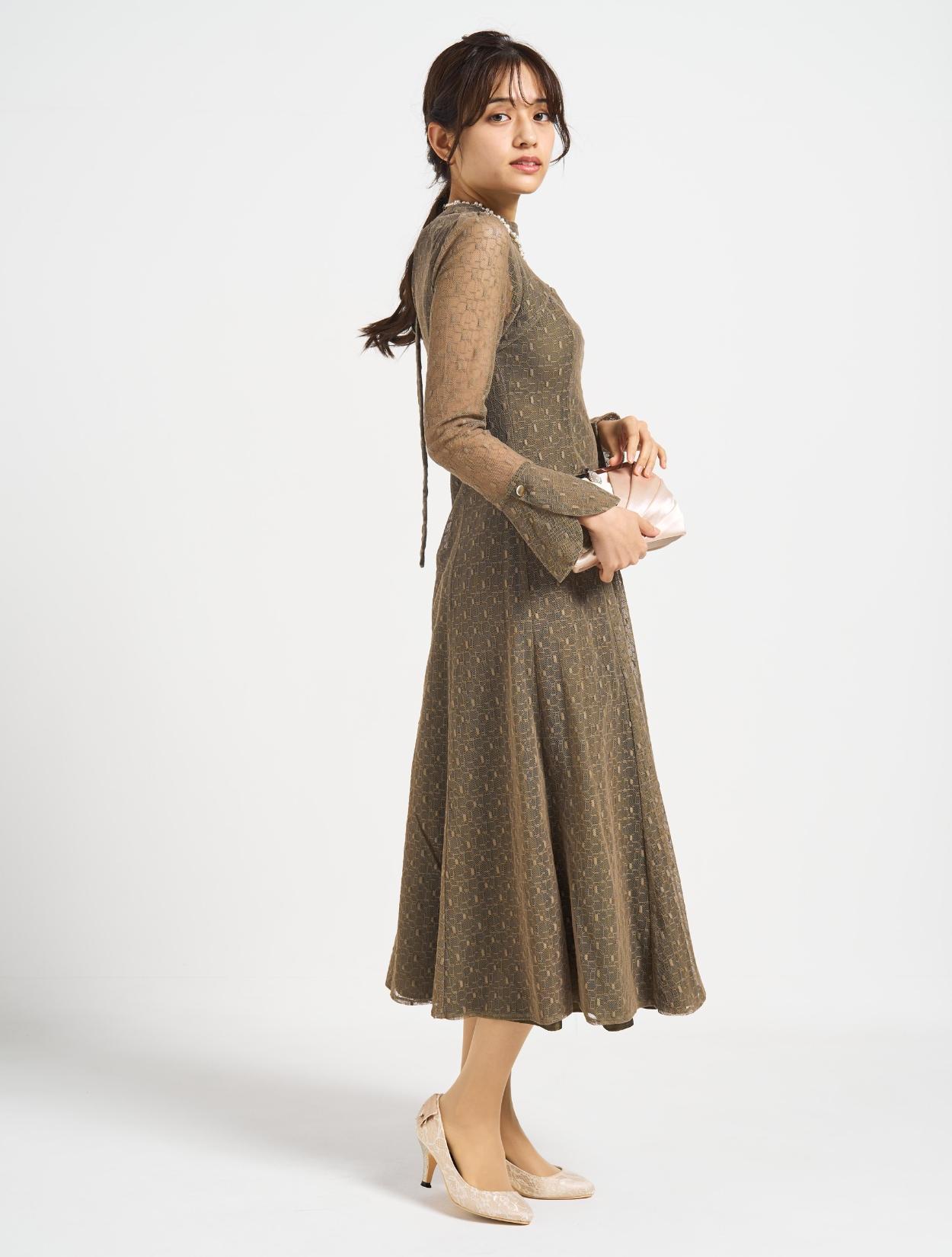 ■グリーンの幾何学柄のチュールレースが珍しく、エレガントで上品な印象に!