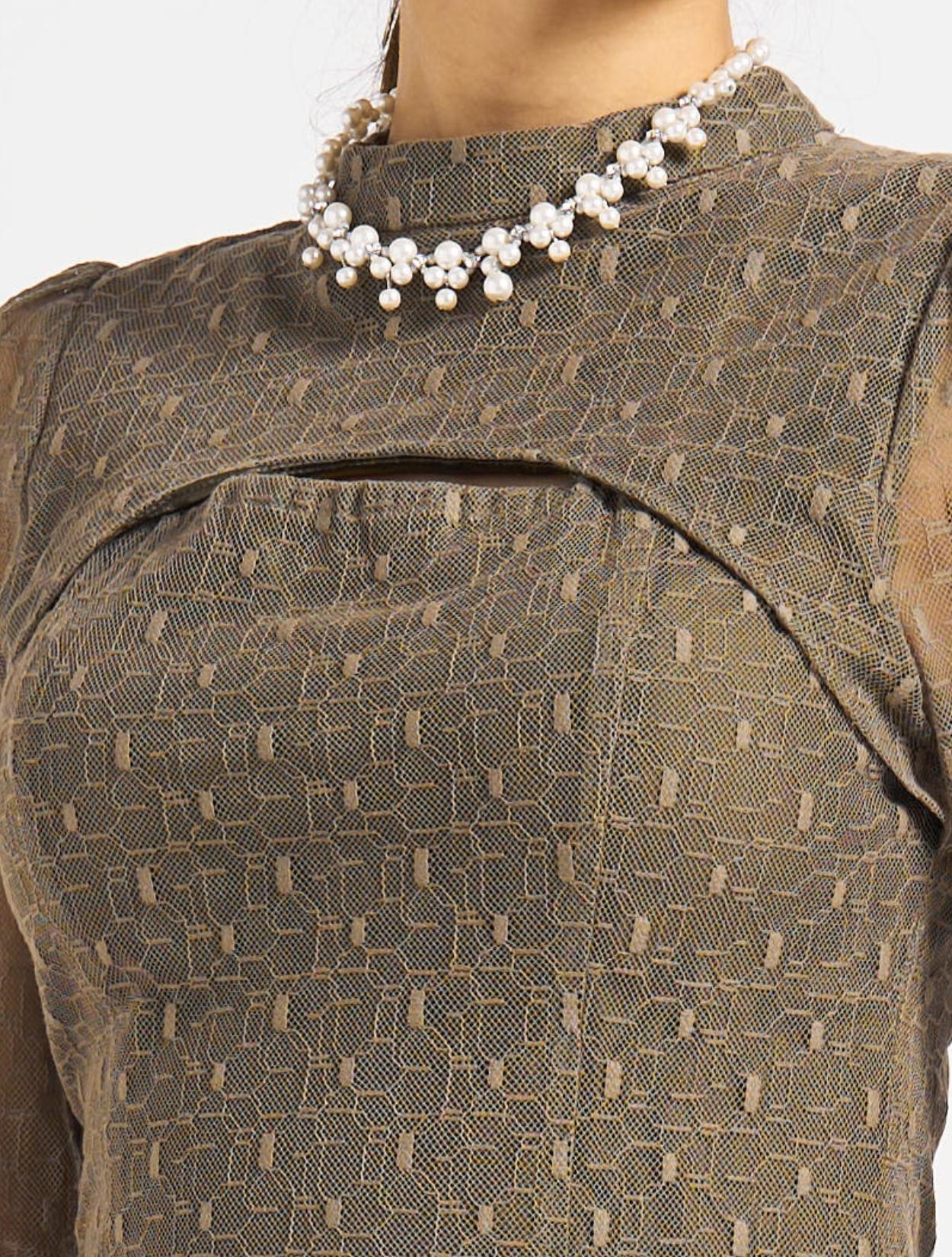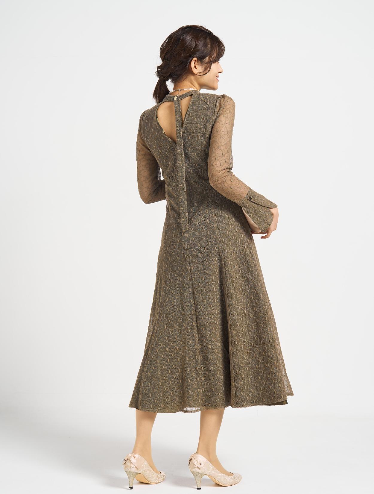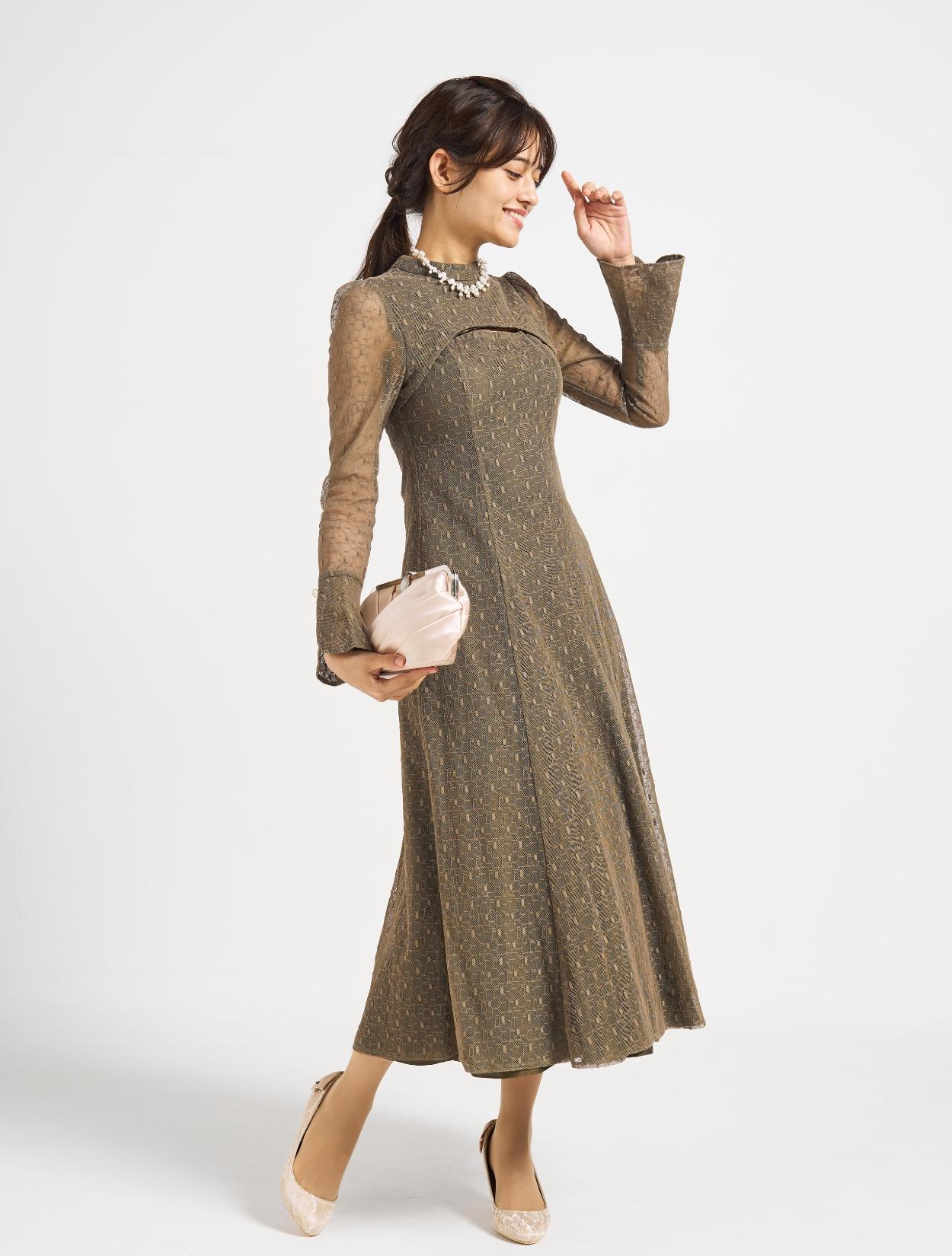 ■グリーンの幾何学柄のチュールレースが珍しく、エレガントで上品な印象に!