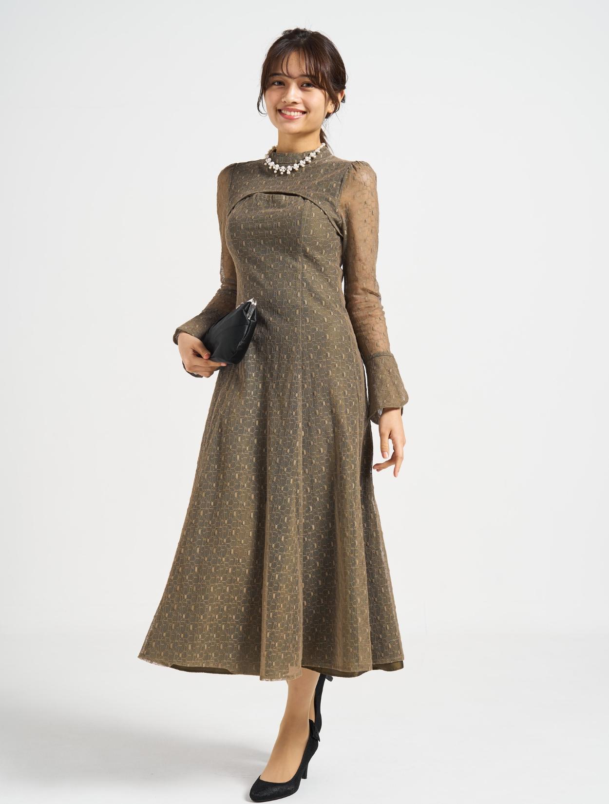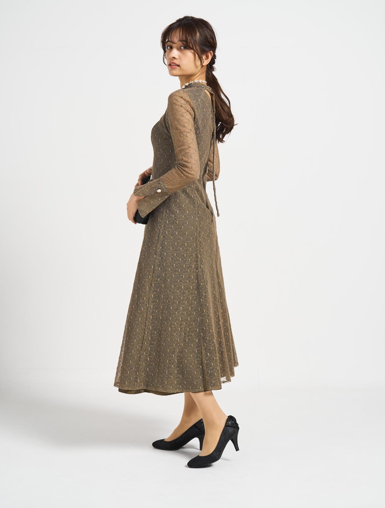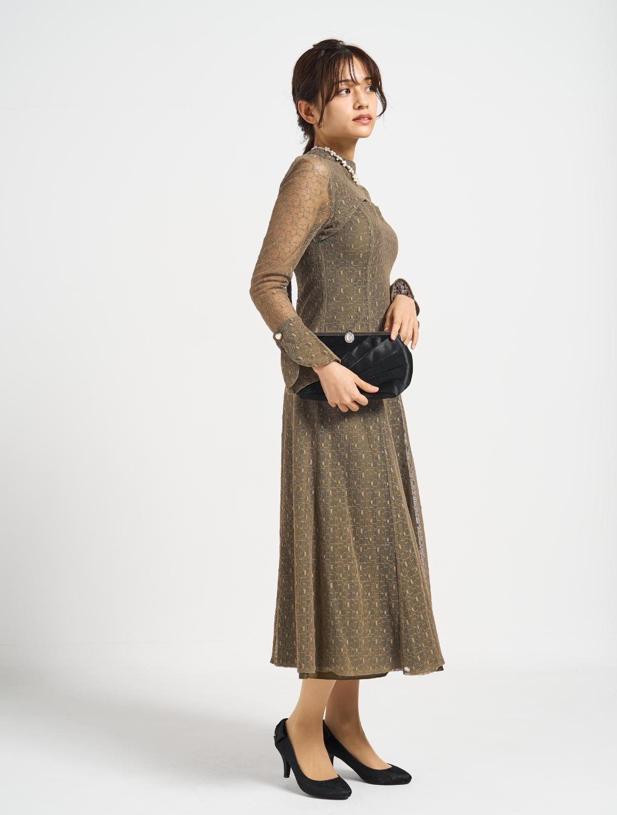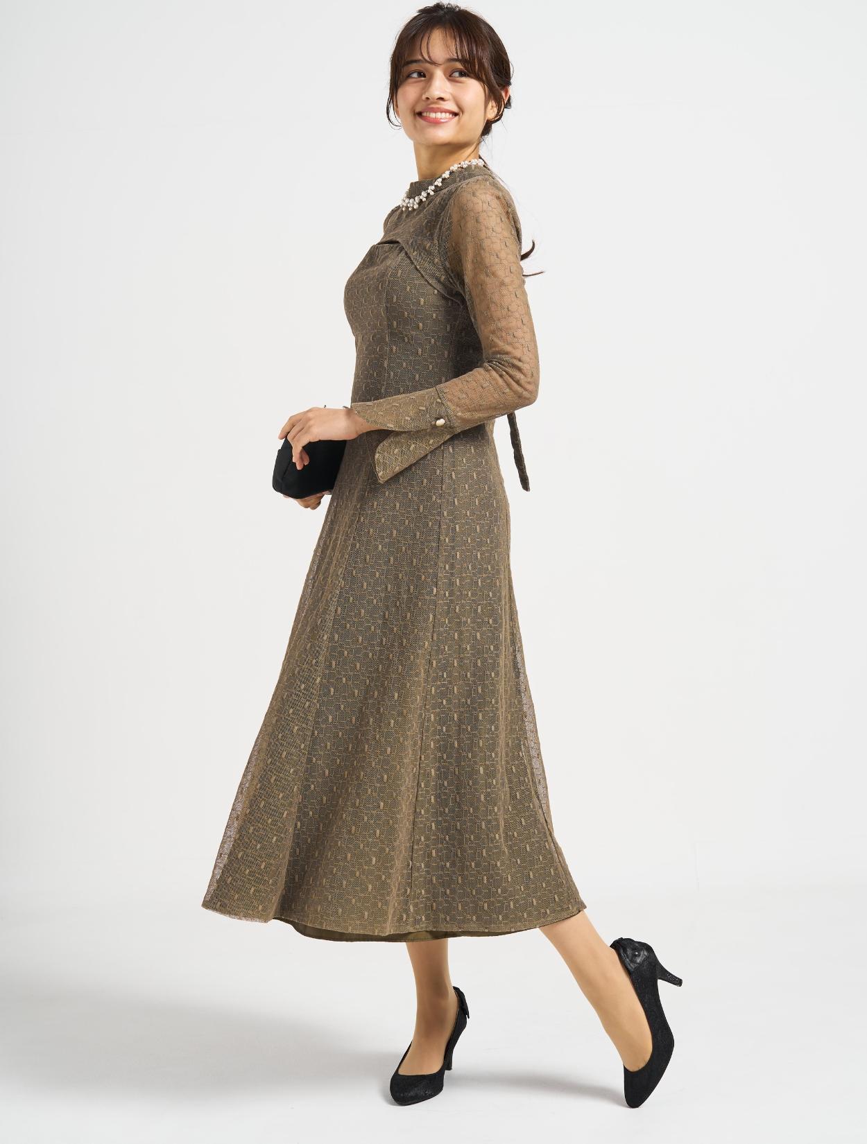 【3点セット】総レースロングスリーブドレス(グリーン)SET3290