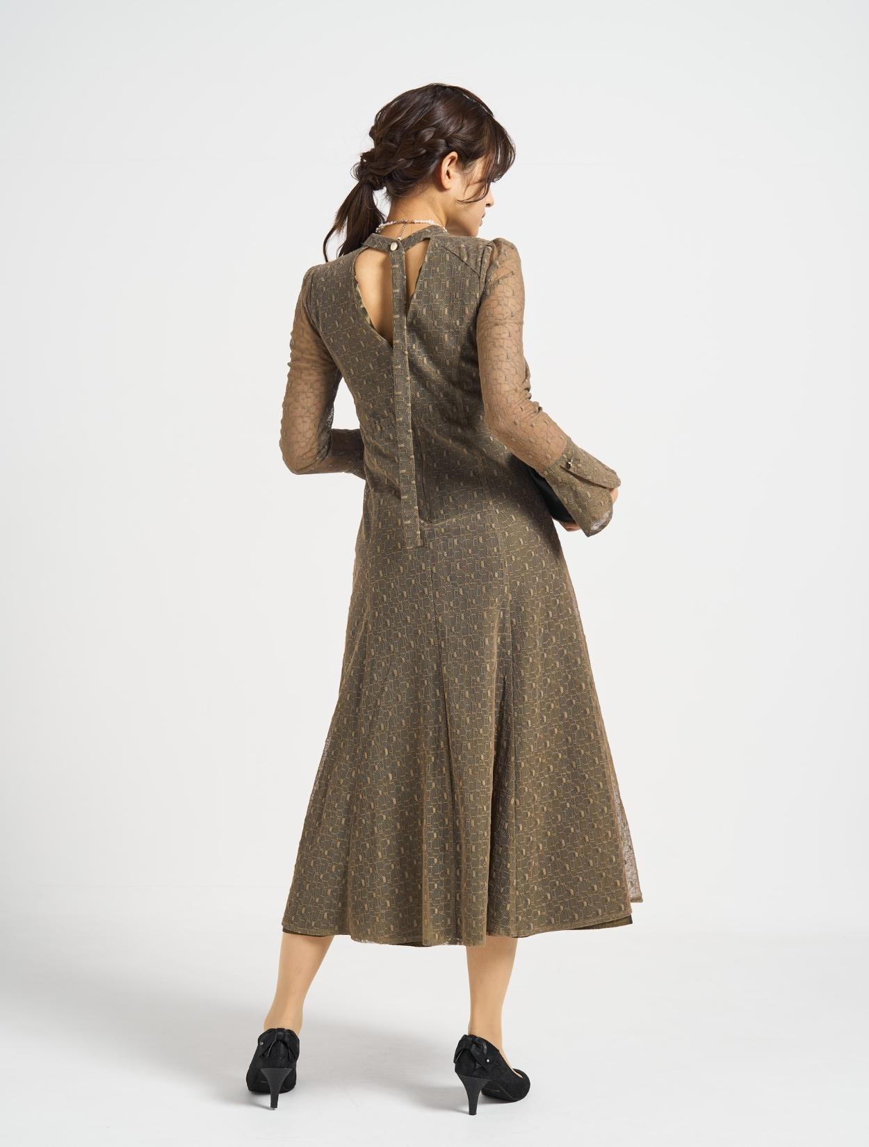■グリーンの幾何学柄のチュールレースが珍しく、エレガントで上品な印象に!