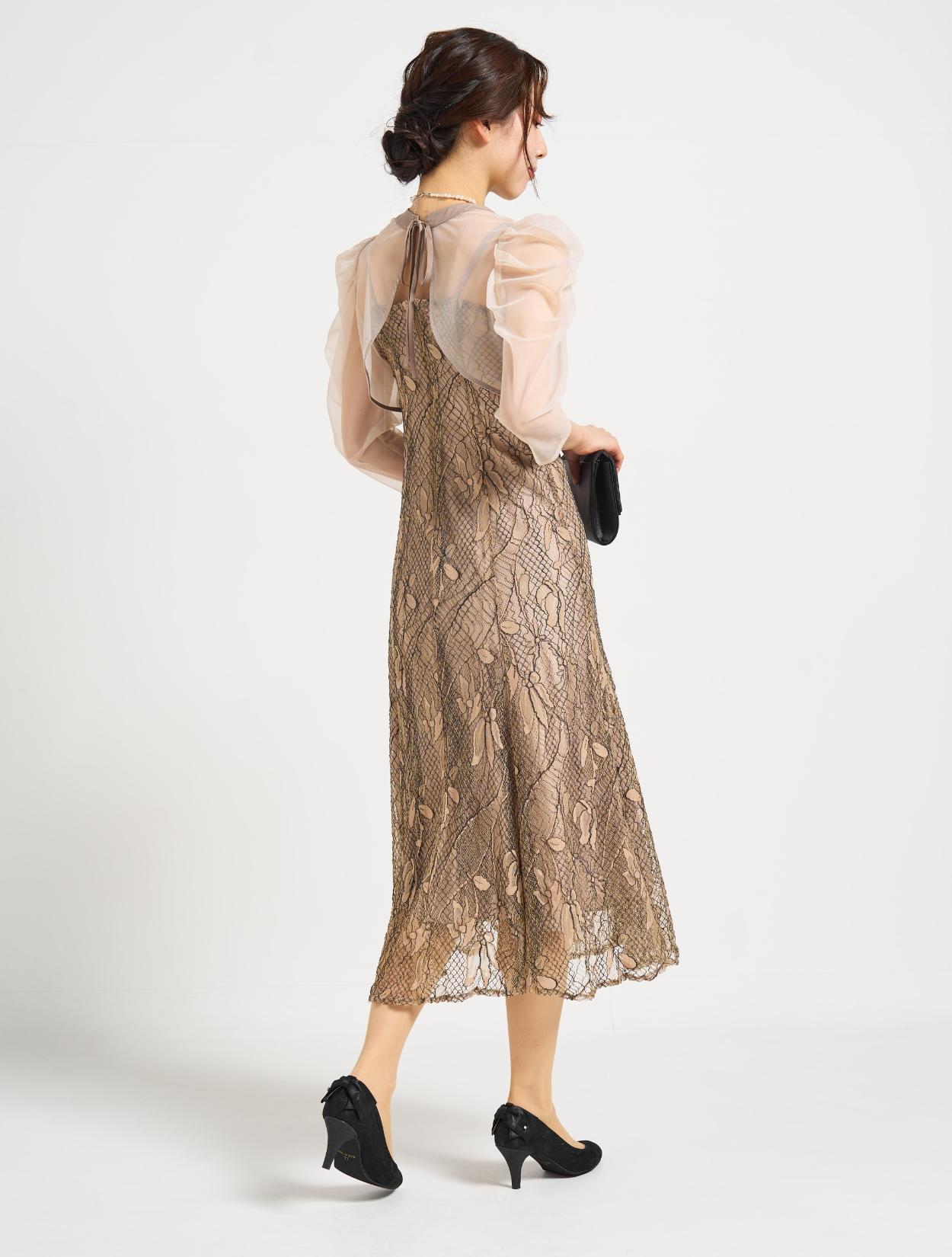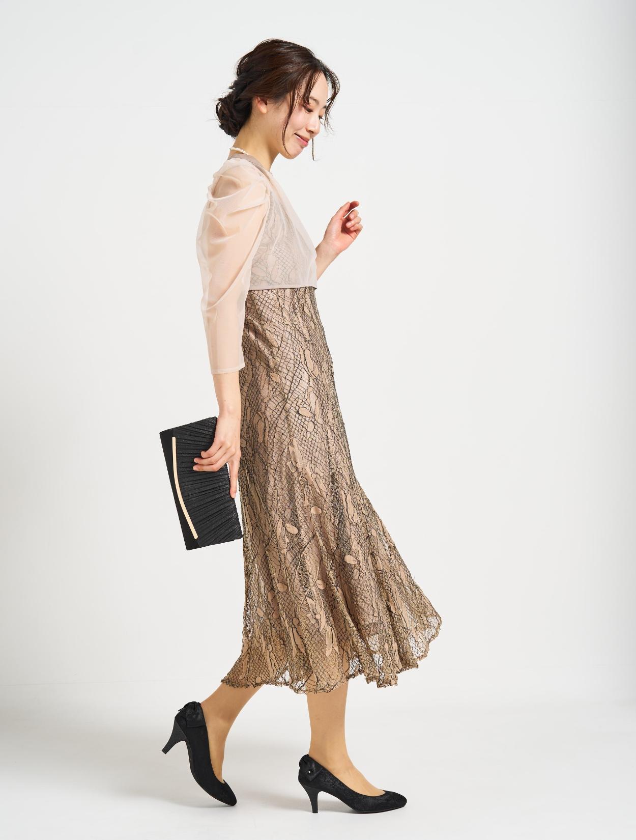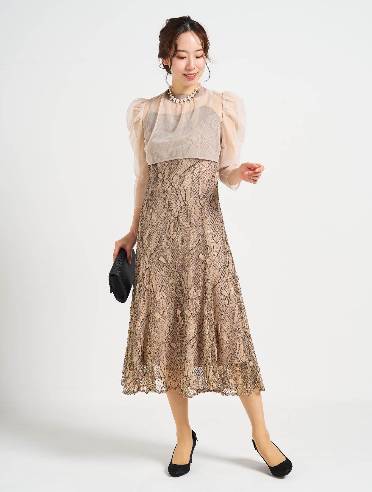 ■しっかりめのコードレース素材で、きちんとフォーマルでも着こなせるドレス。