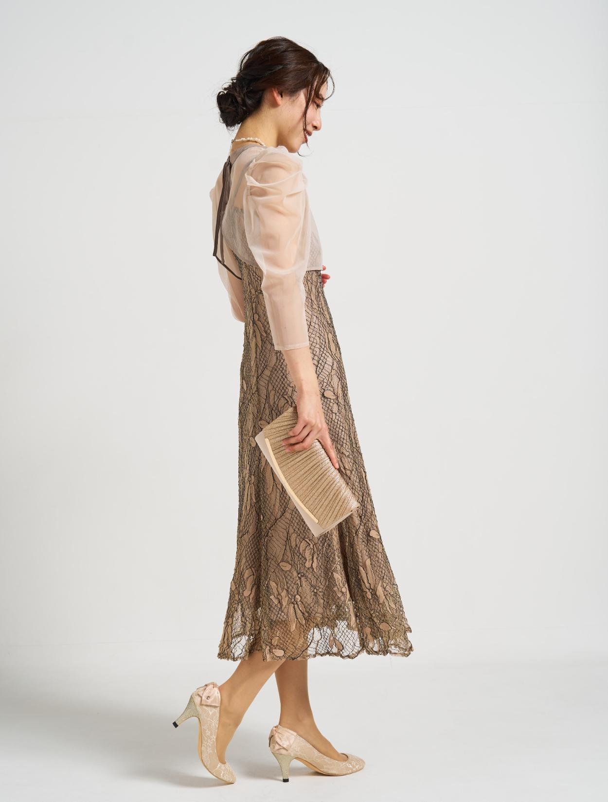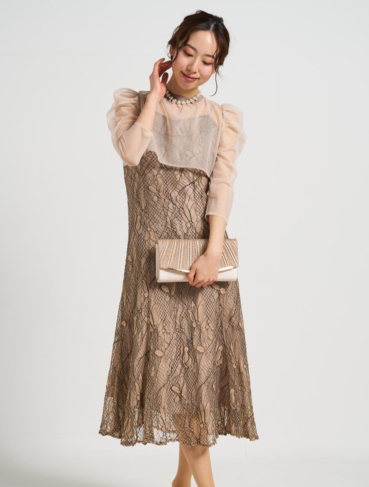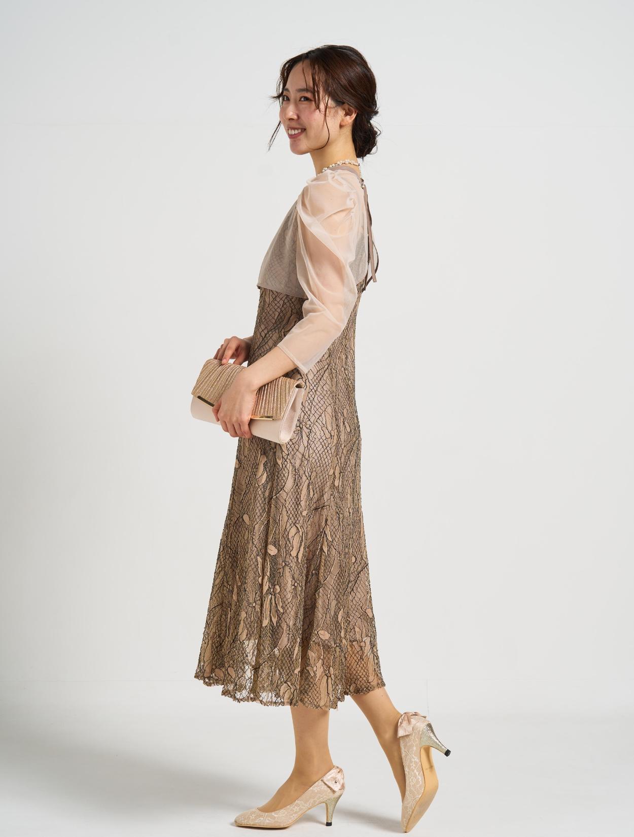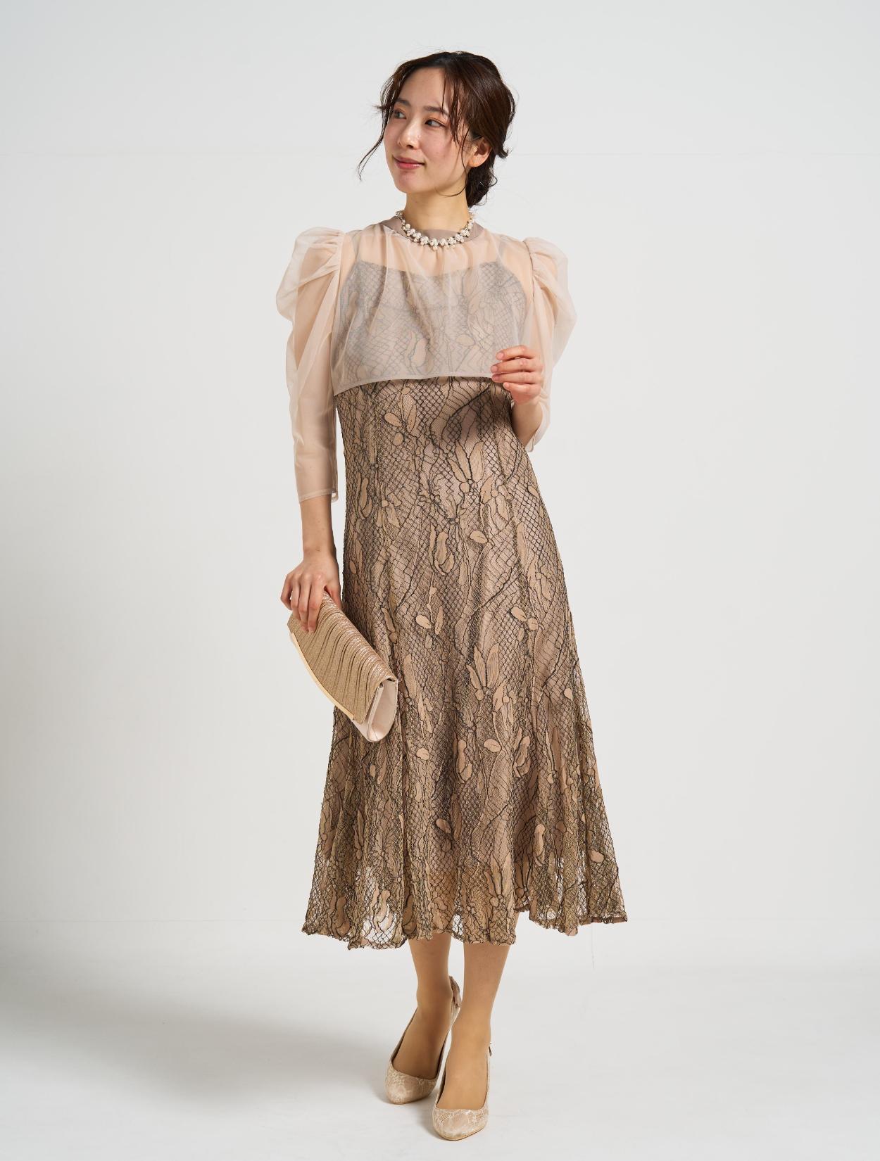 ■しっかりめのコードレース素材で、きちんとフォーマルでも着こなせるドレス。