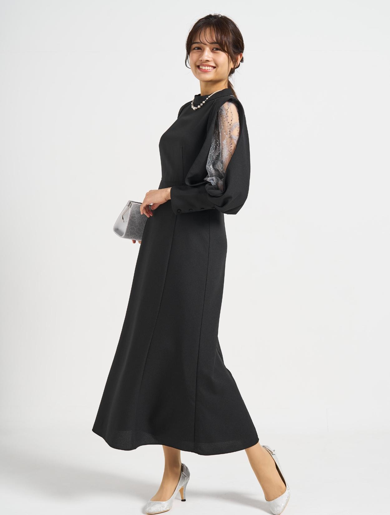 ■上品なフレアラインに袖のスリットから除く刺繍レースが印象的な1着。