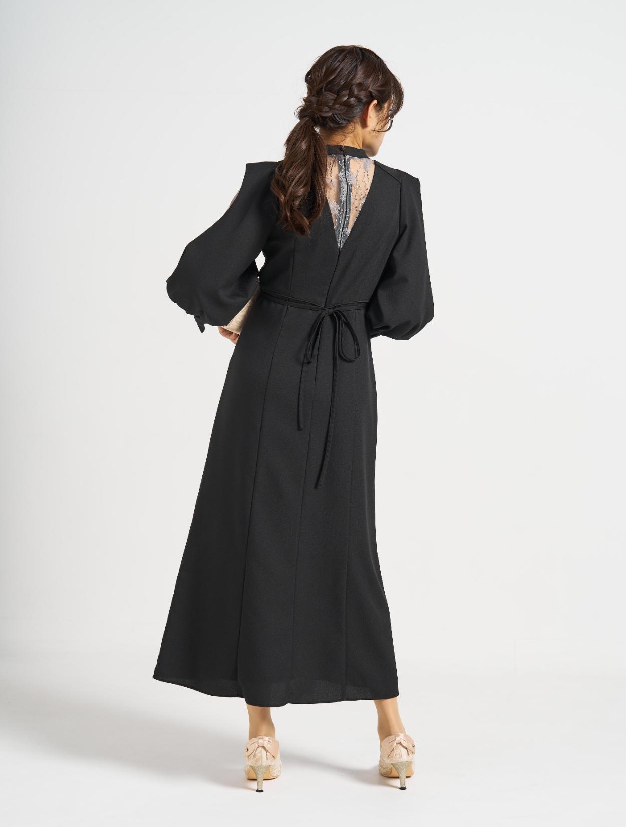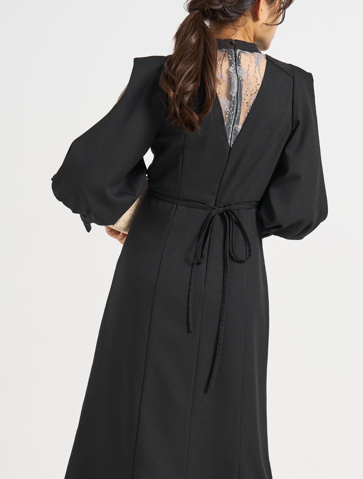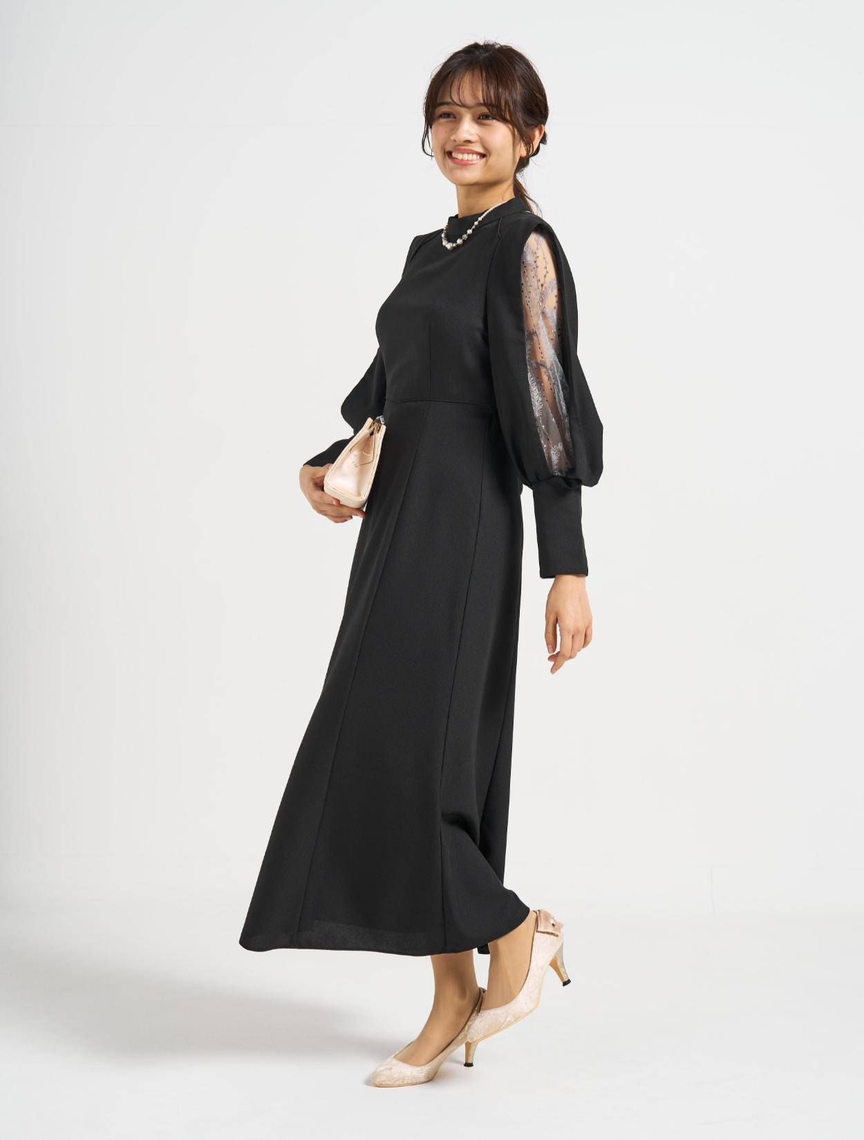 ■上品なフレアラインに袖のスリットから除く刺繍レースが印象的な1着。
