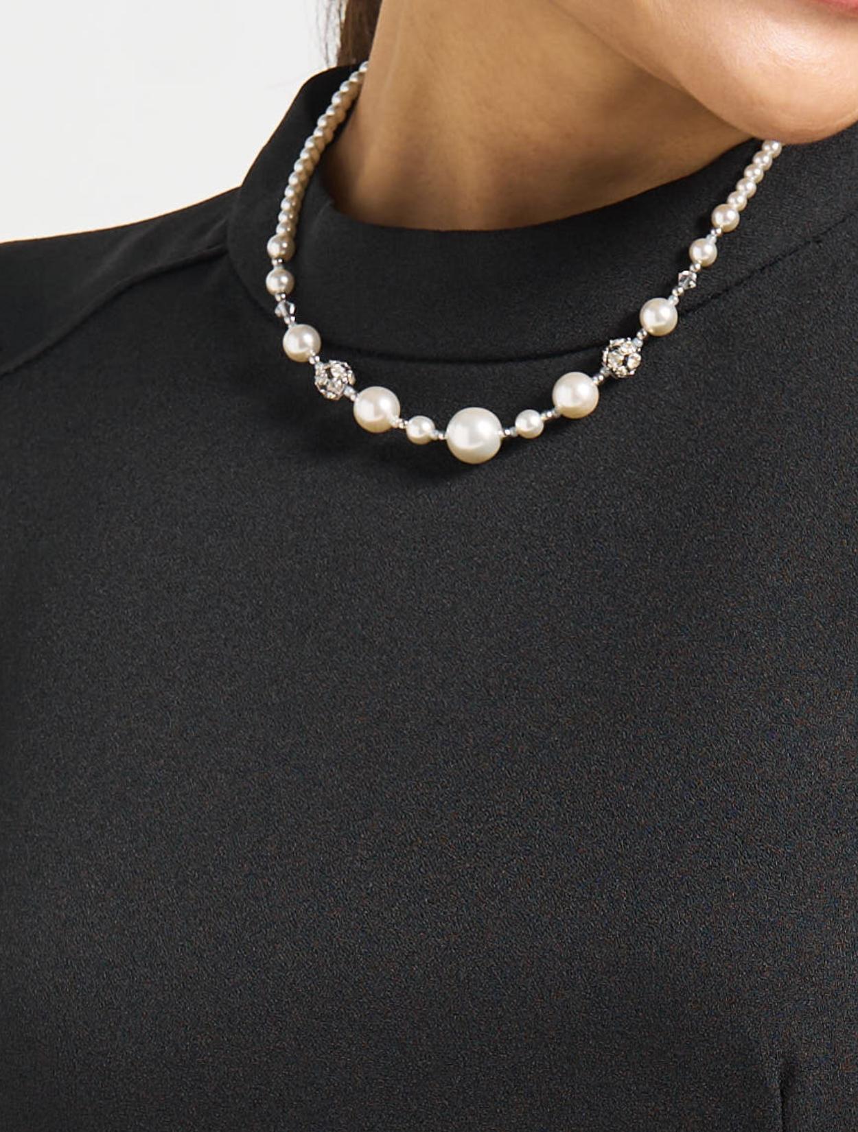 ■スタンドカラーできちんと感を出しながら、程よい肌見せがエレガンス要素をプラス。