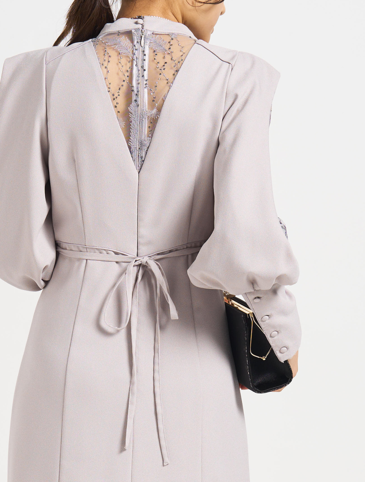 ■袖のスリットと背中の一部が刺繍レースで透け感を演出。