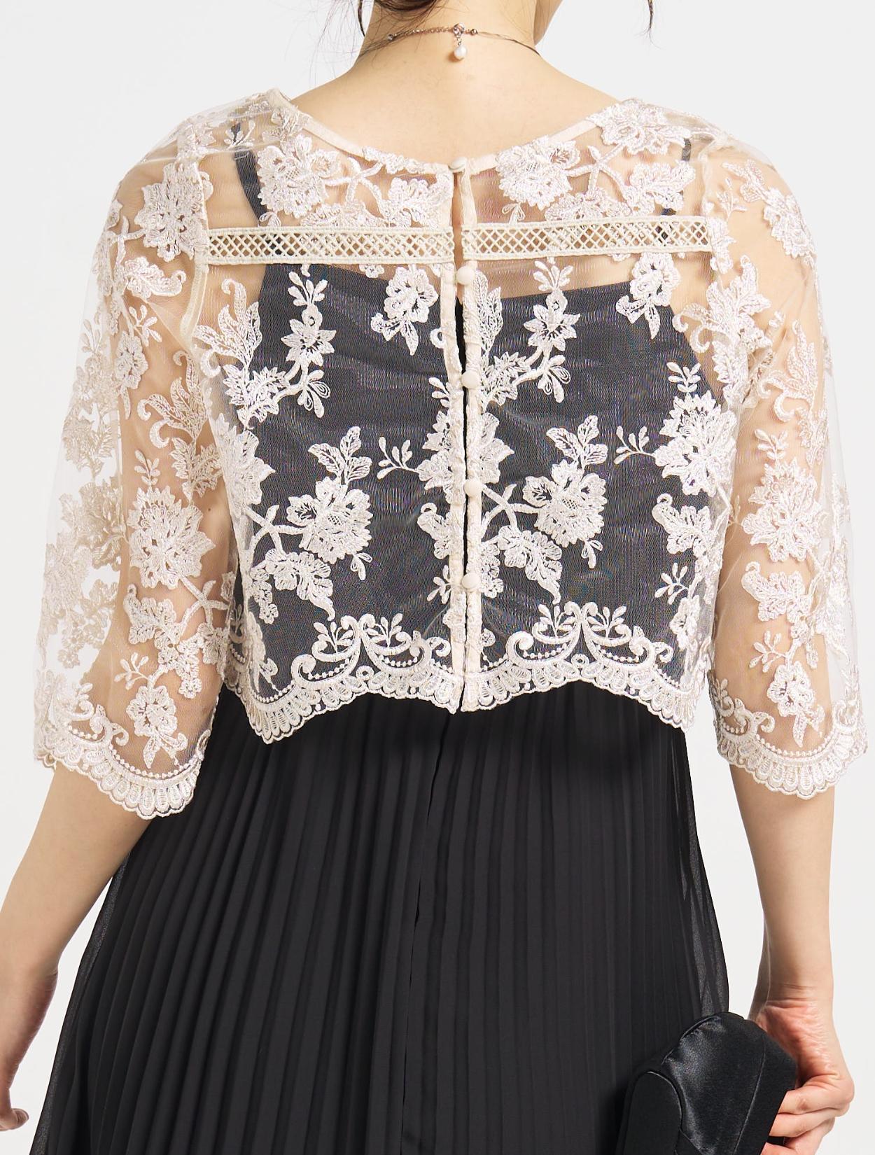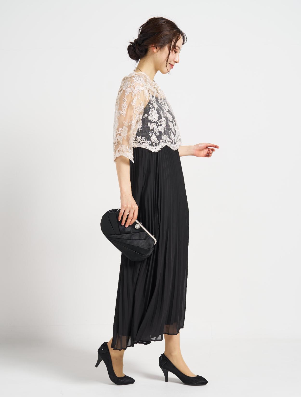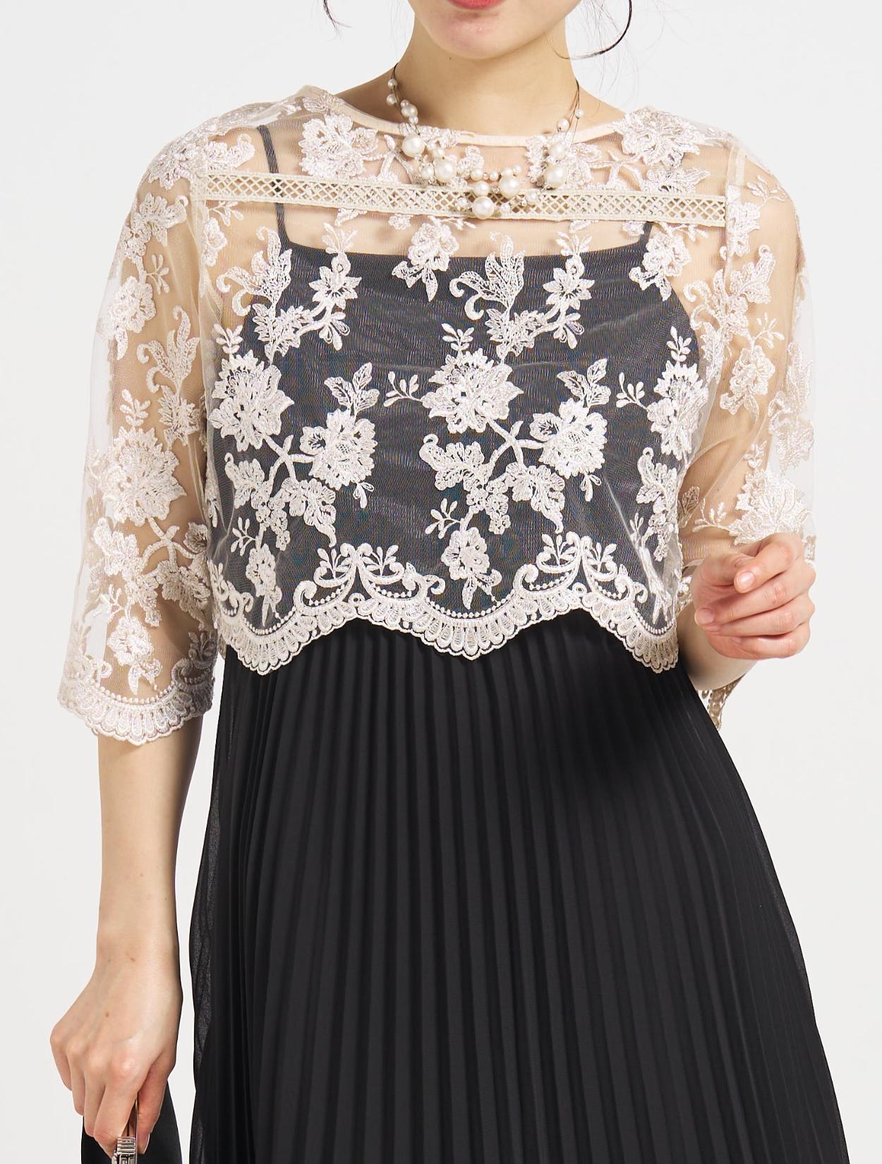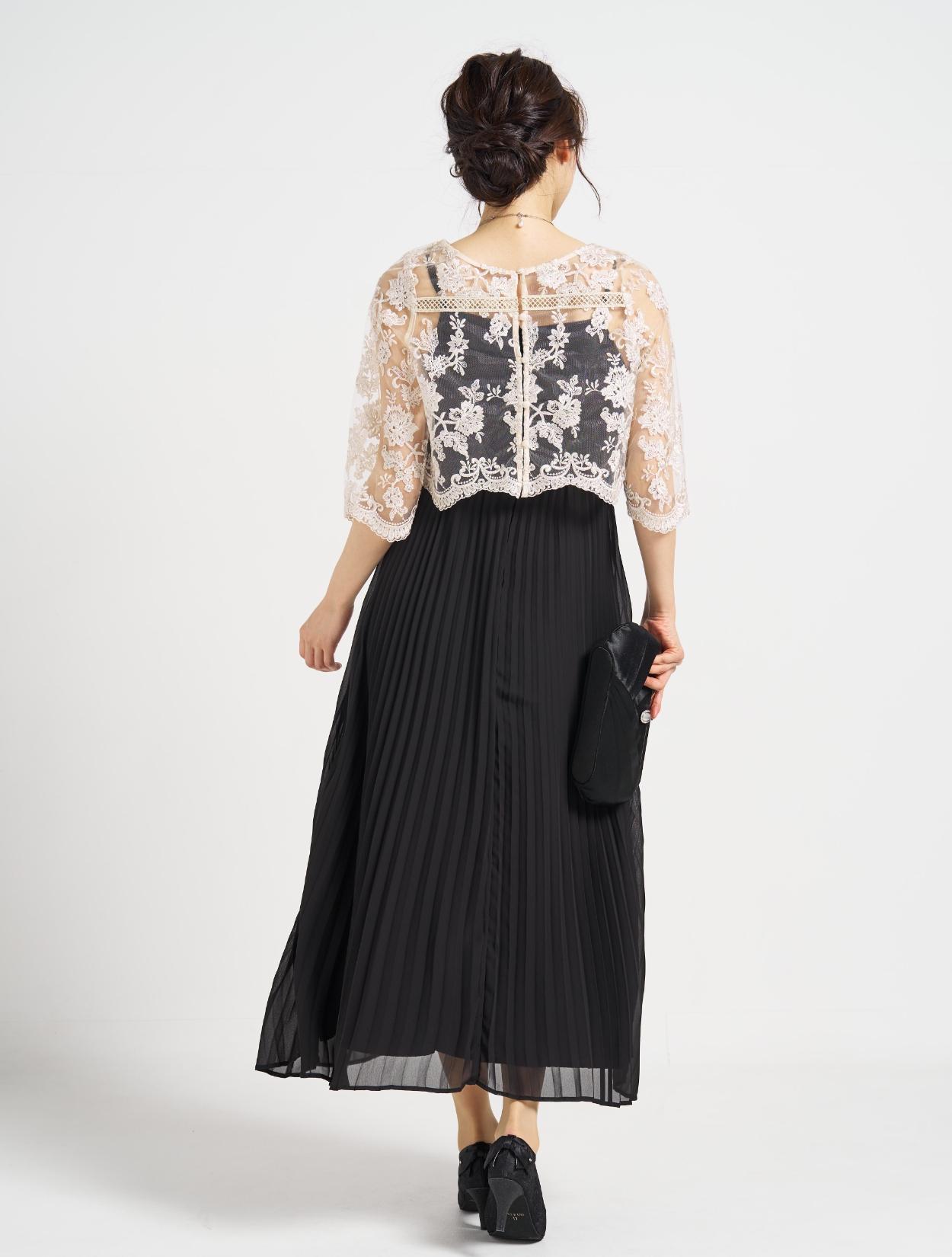 ■プリーツキャミドレスに刺繍レースのTOPSを合わせた上品な1着。