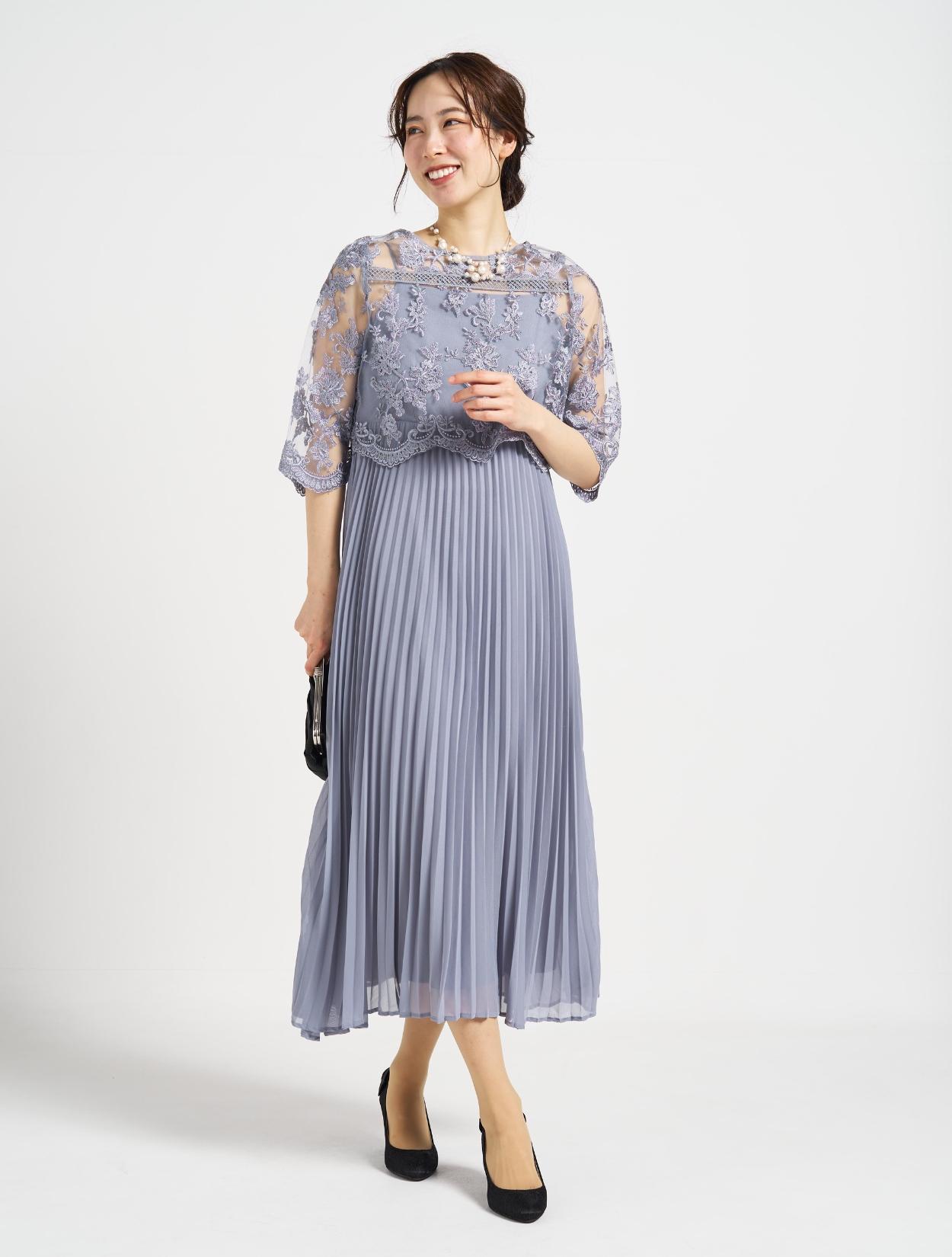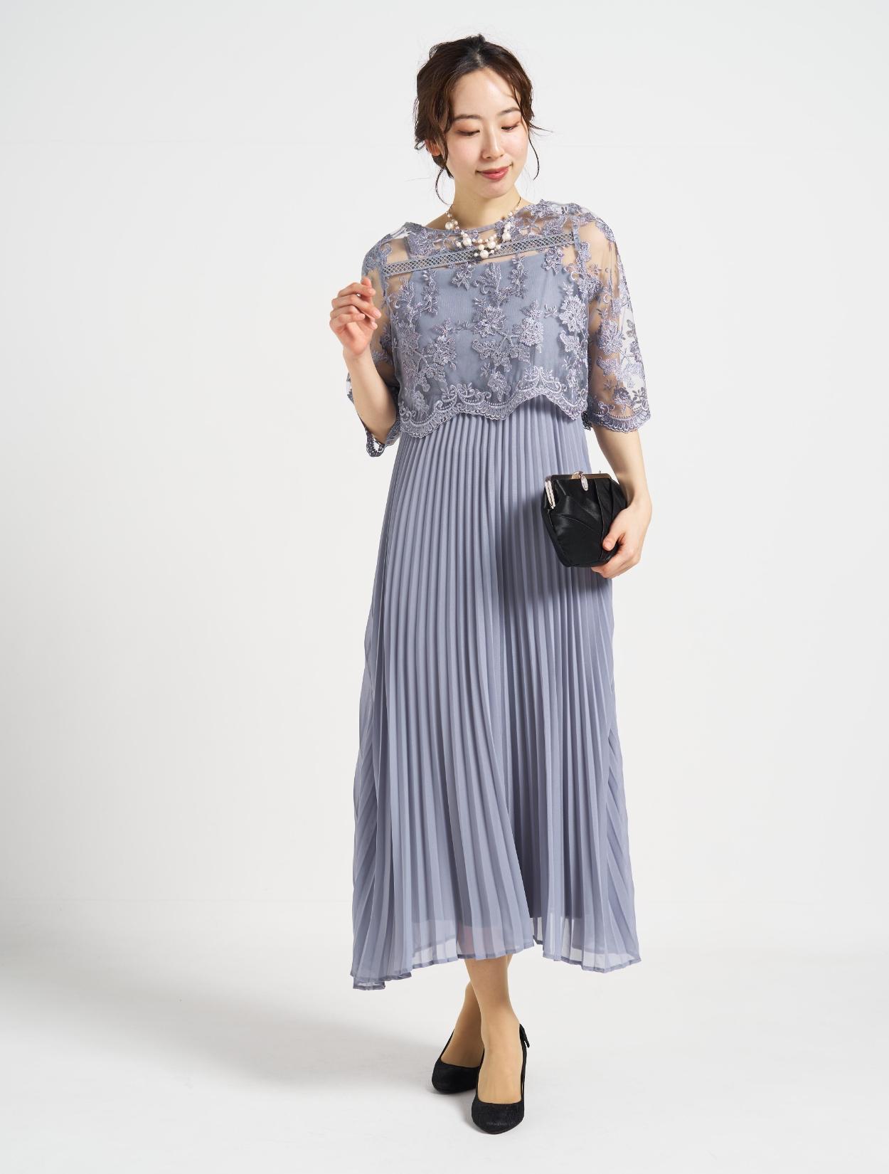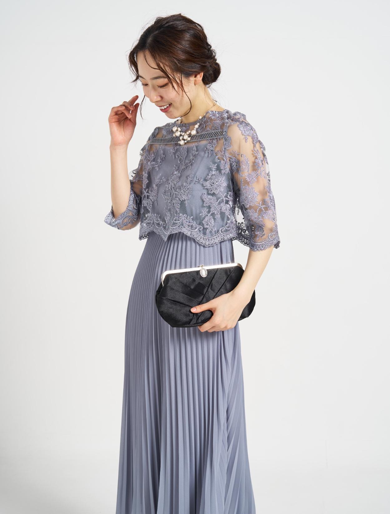 ■プリーツキャミドレスに刺繍レースのTOPSを合わせた上品な1着。
