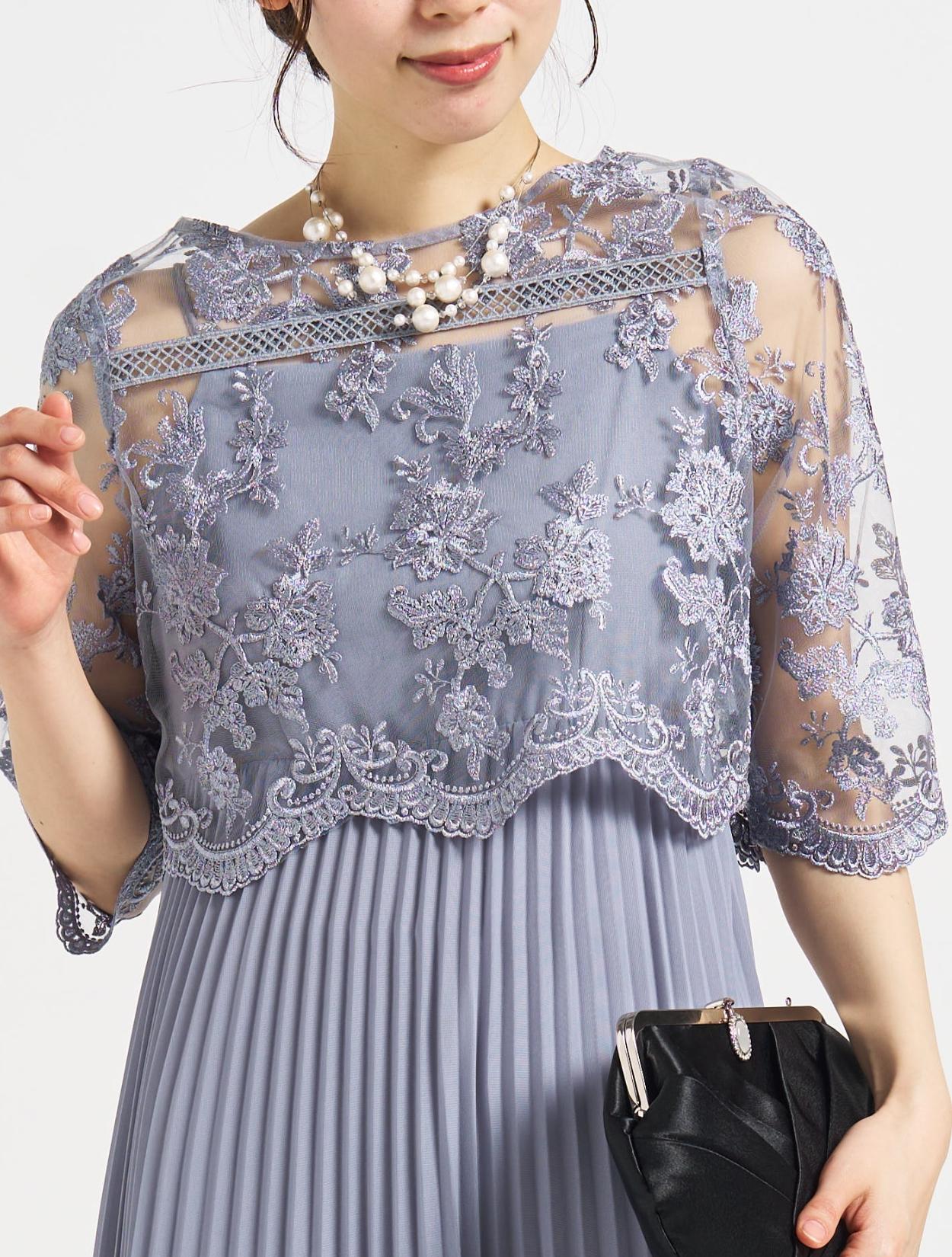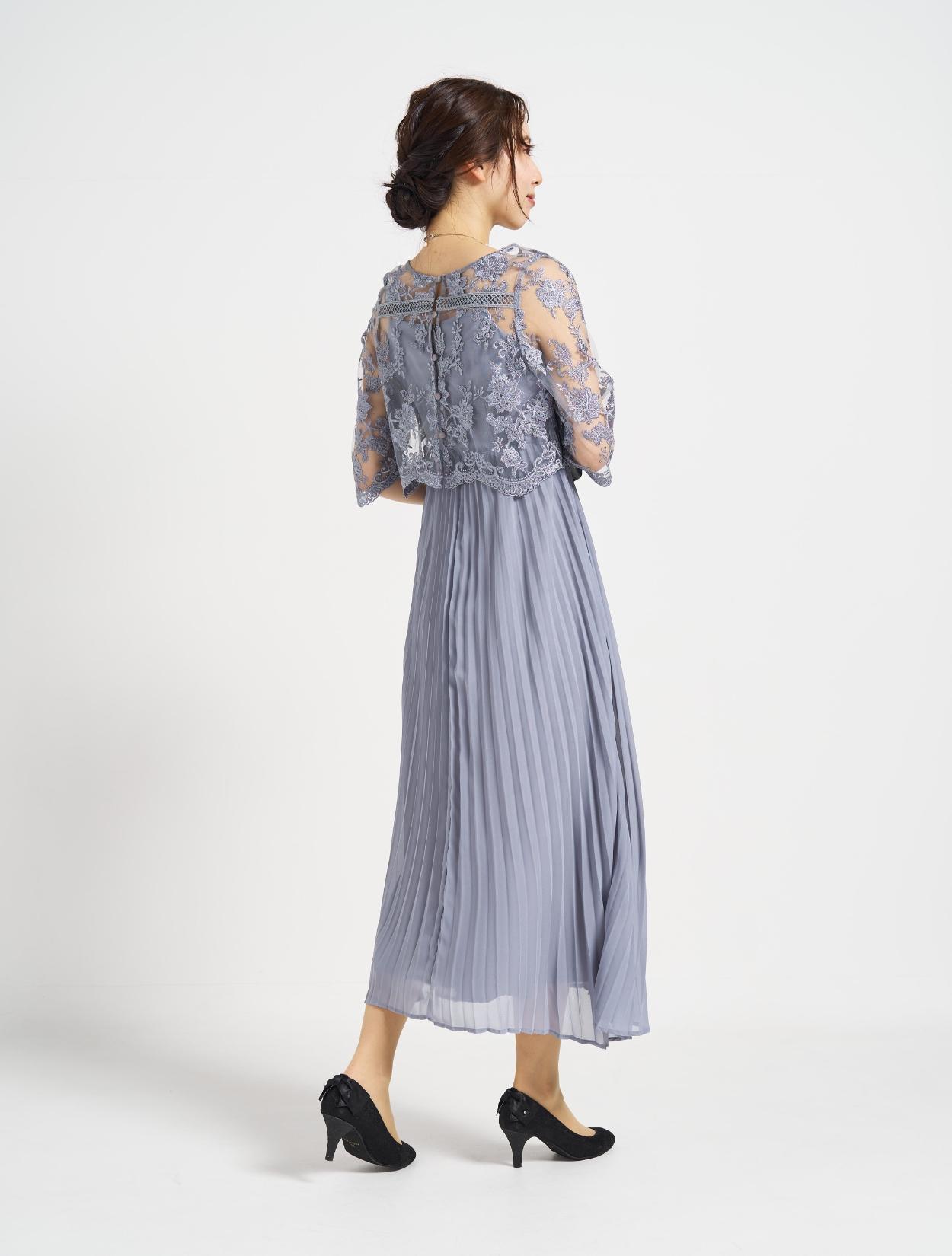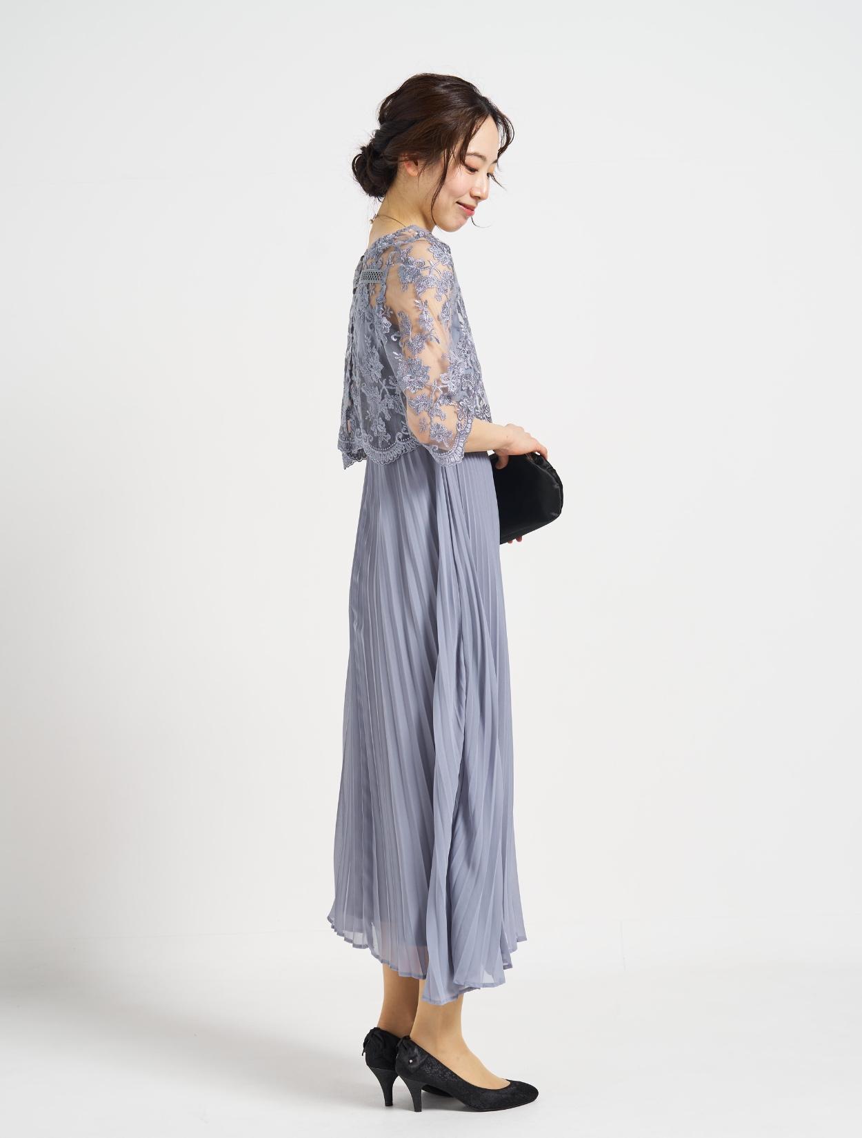 ■プリーツキャミドレスに刺繍レースのTOPSを合わせた上品な1着。