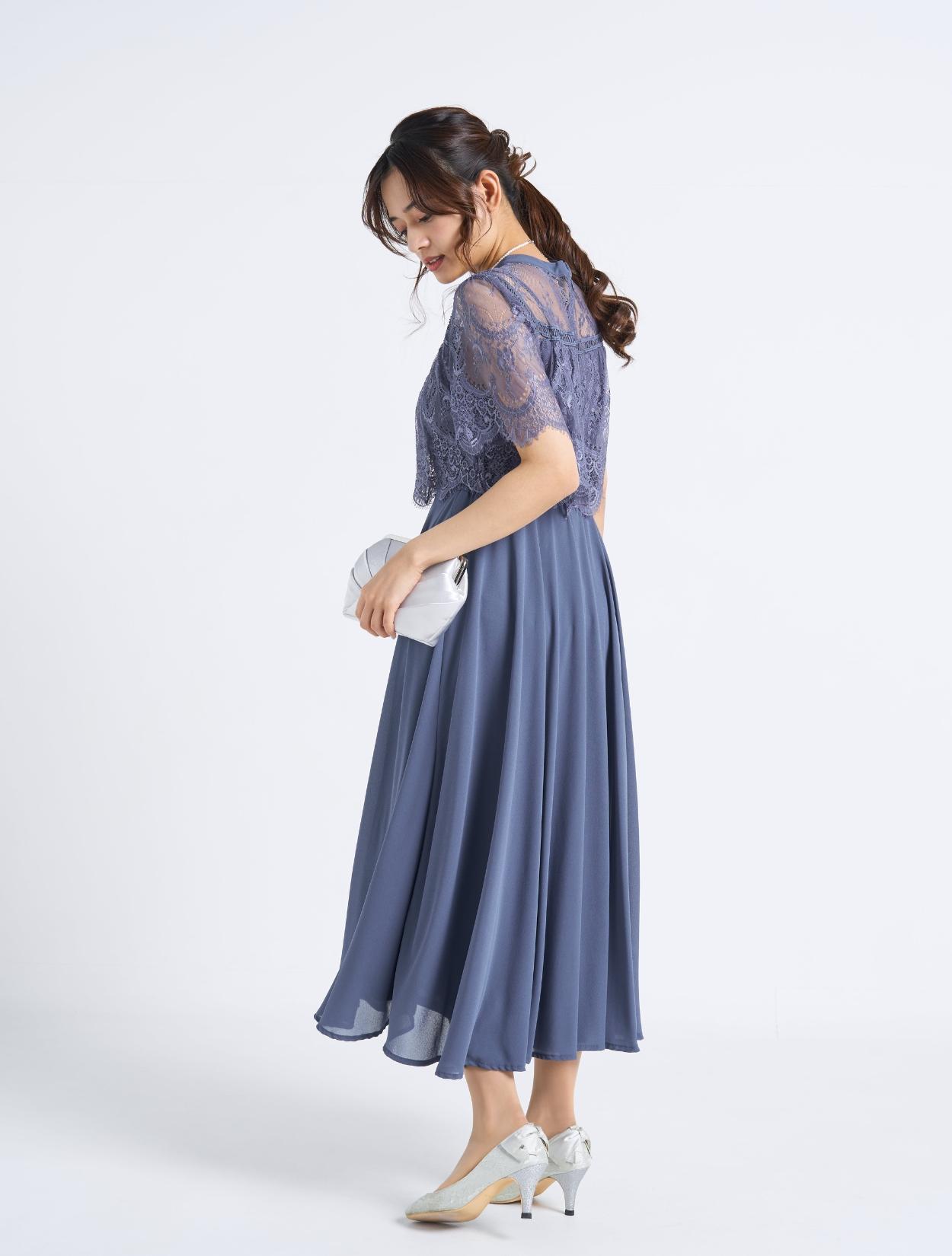 【3点セット】ソフトジョーゼット×レースドレス(ブルー)SET3327