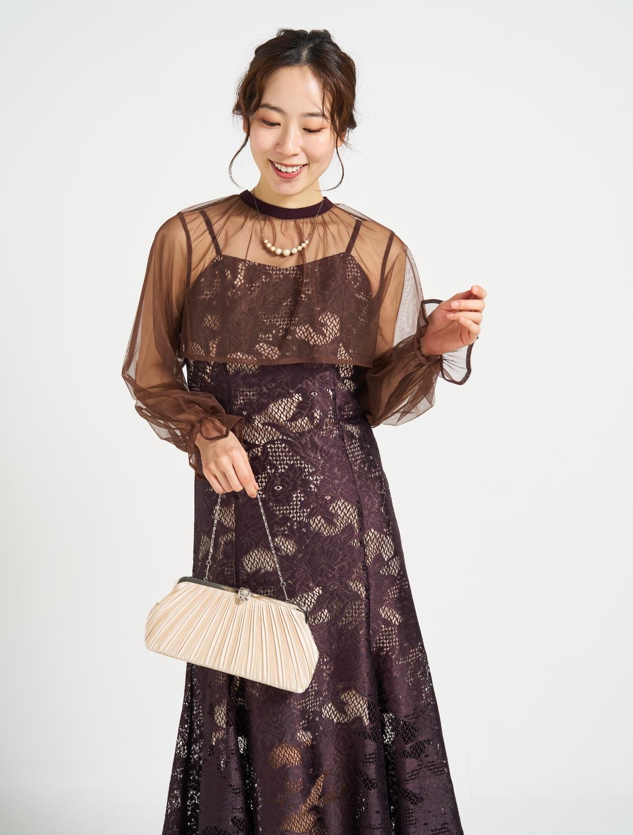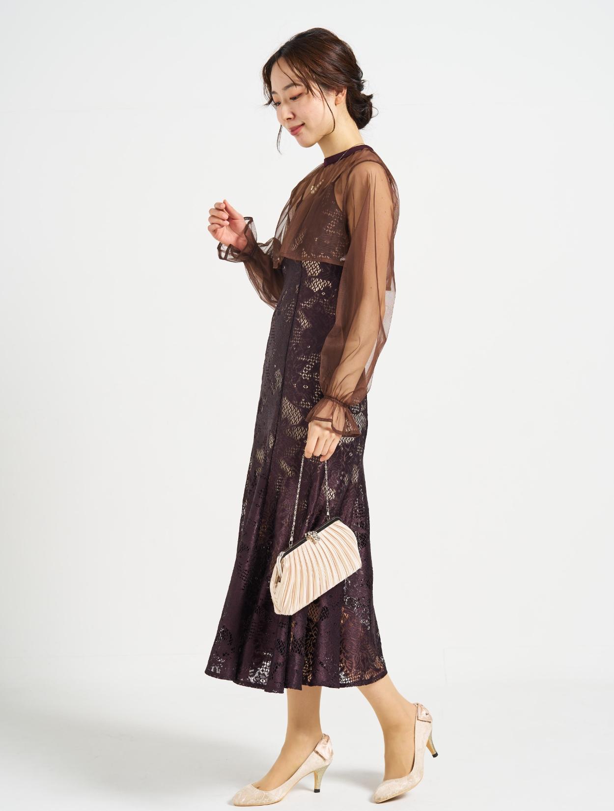 ■ジャガードレースのマーメイドドレスと2wayのシフォンブラウスの華やかなドレスです。