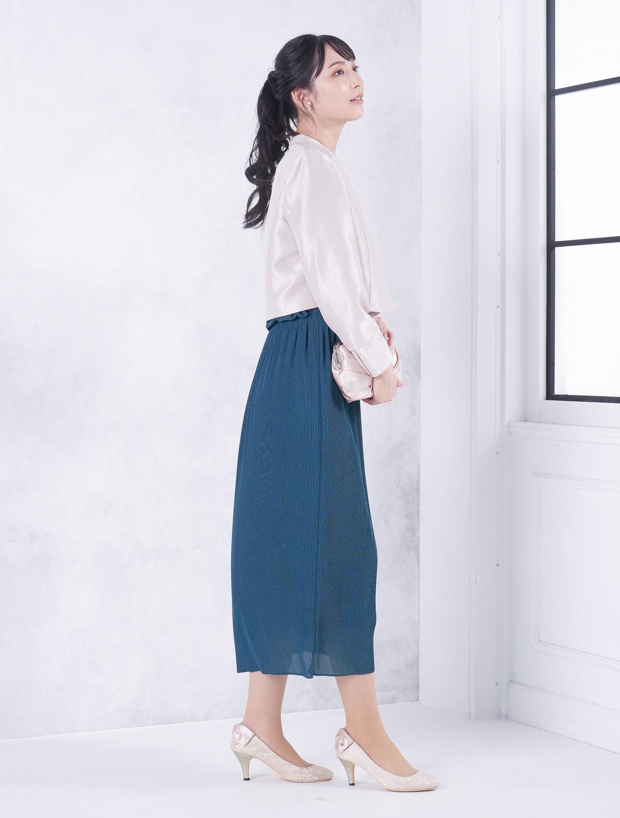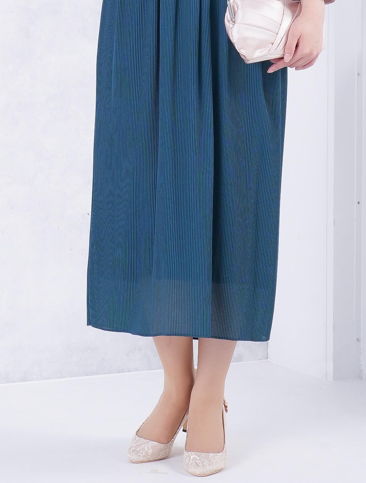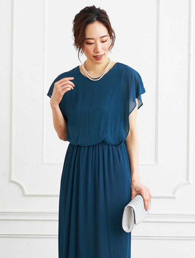 ■細いプリーツの入ったスカートで、さり気なく縦のラインを出したスッキリシンプルドレス。