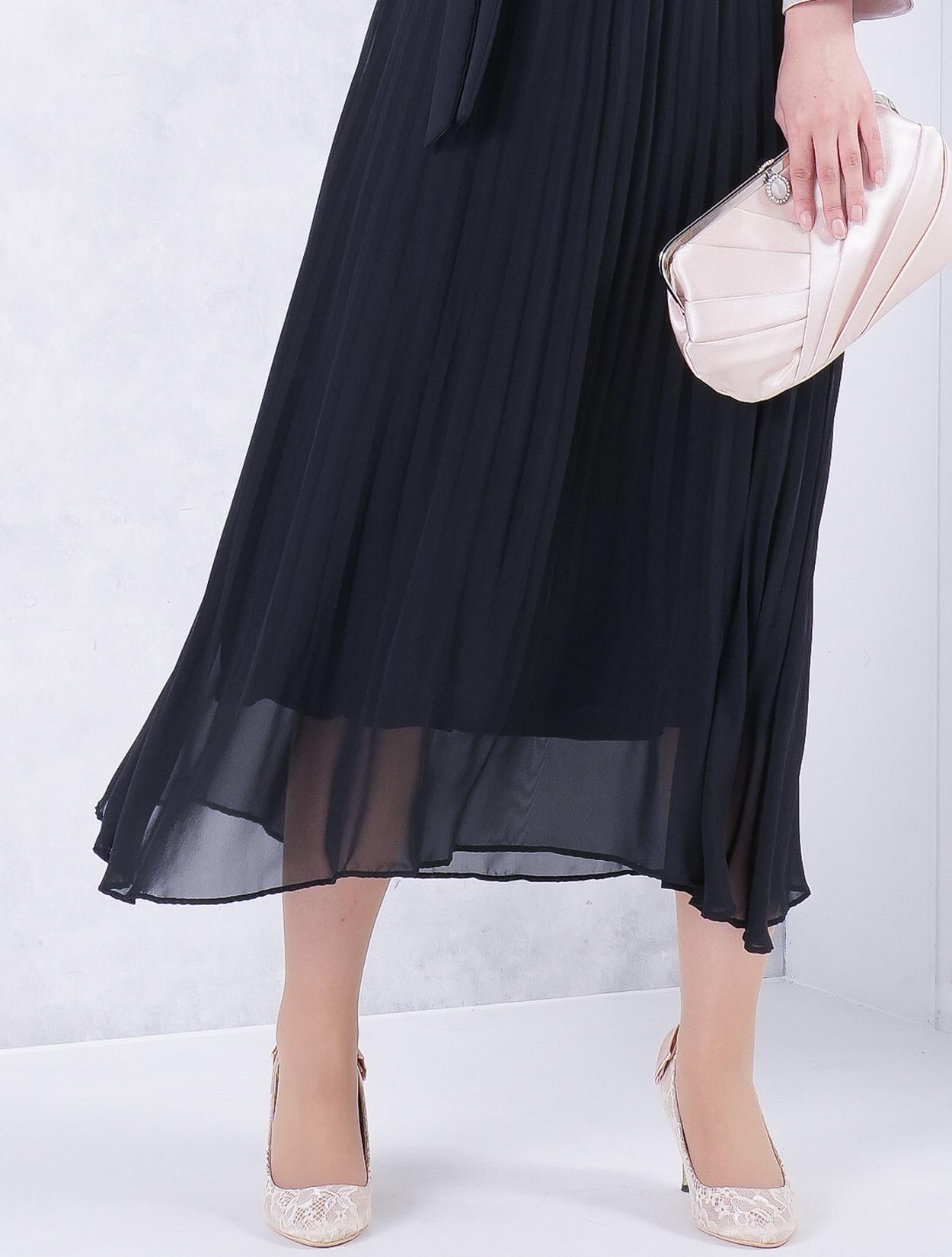 ■細かいプリーツスカートで足長効果を生み出してくれる、エレガントなロングドレスです。