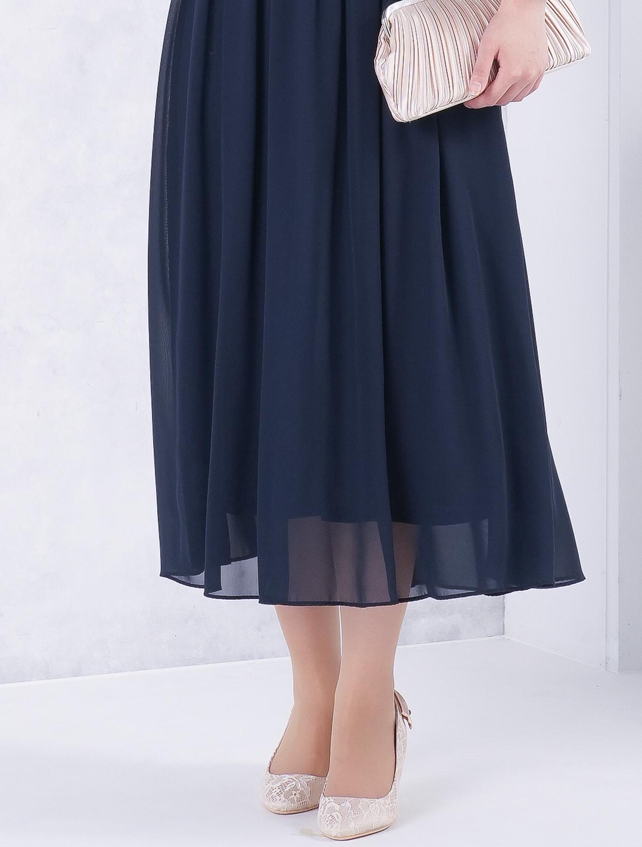 ■軽さのあるシフォン素材で、歩く度に裾がひらひらと揺れ、エレガントな印象です。