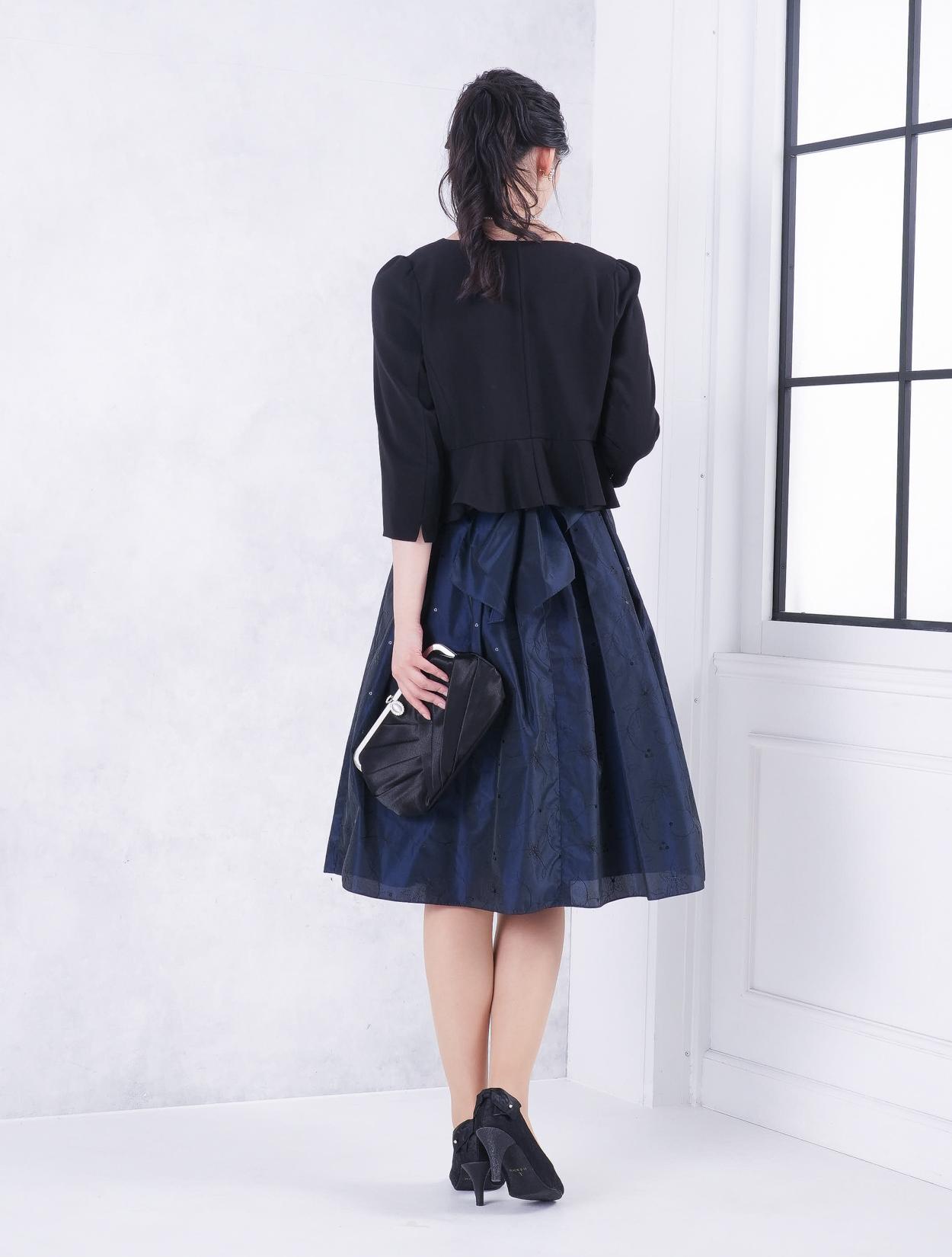 ■どんなシーンにも使いやすいネイビーのドレスで、落ち着いた装いになります。
