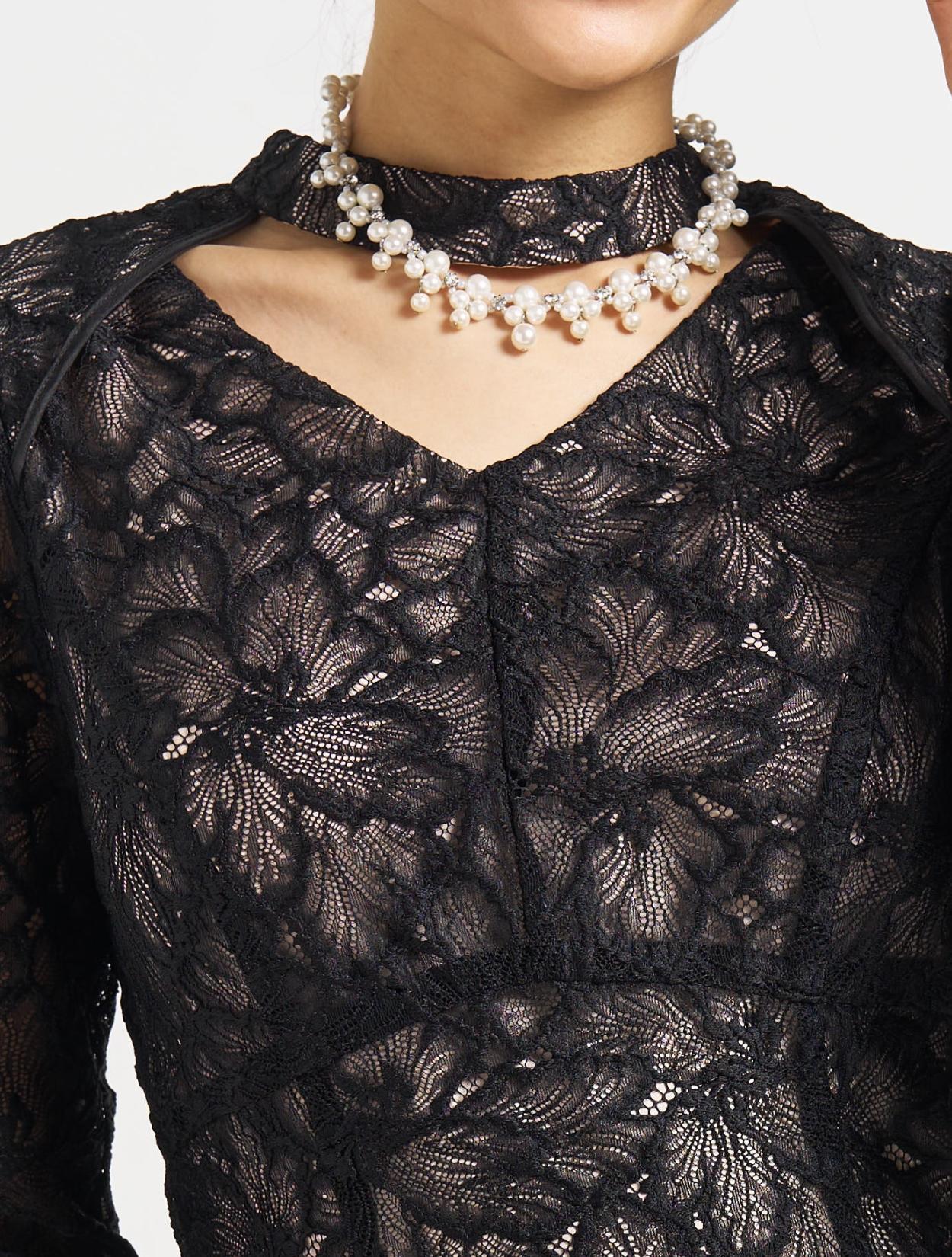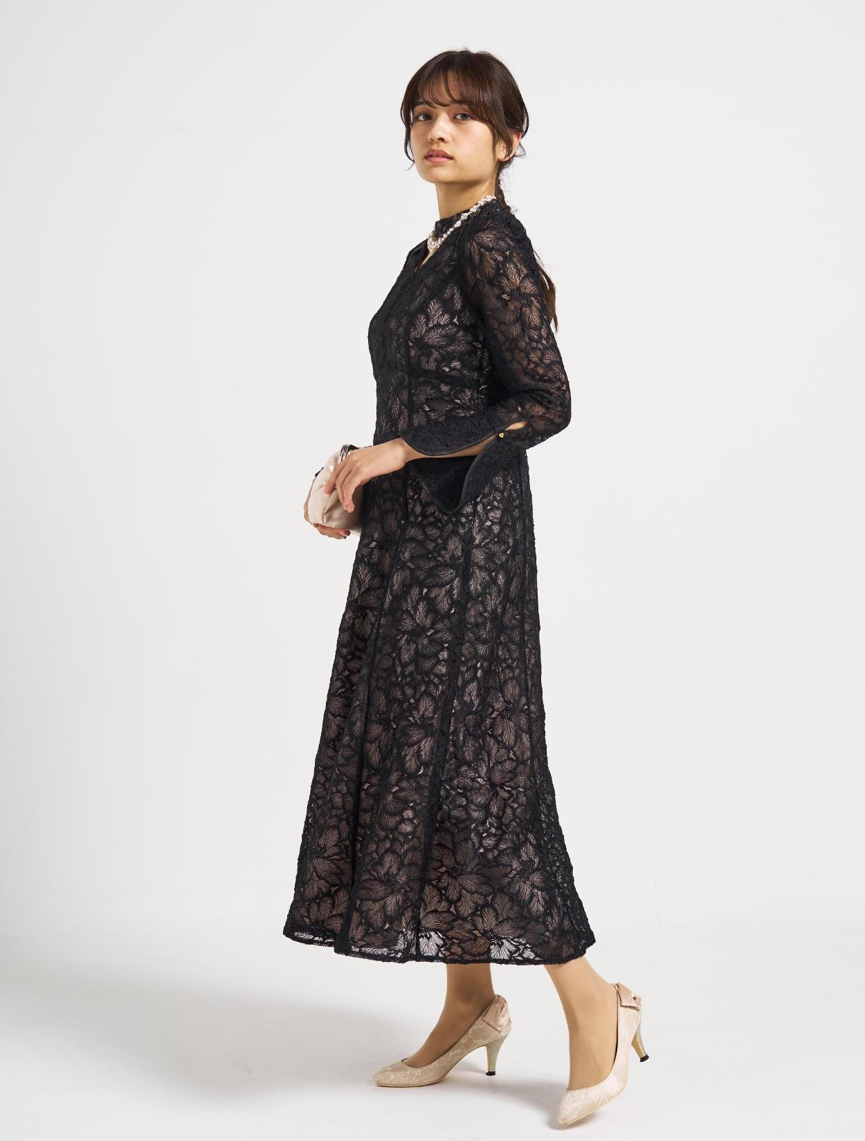 ■露出感はあまりないものの、立体感のあるレースが華やかな一着。