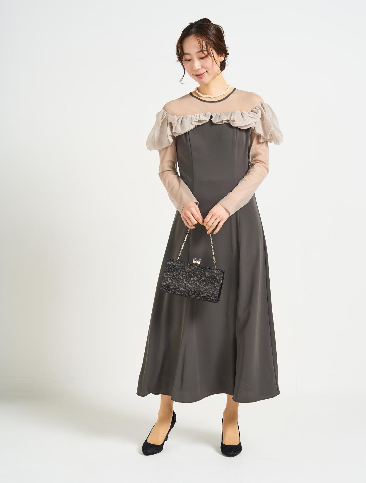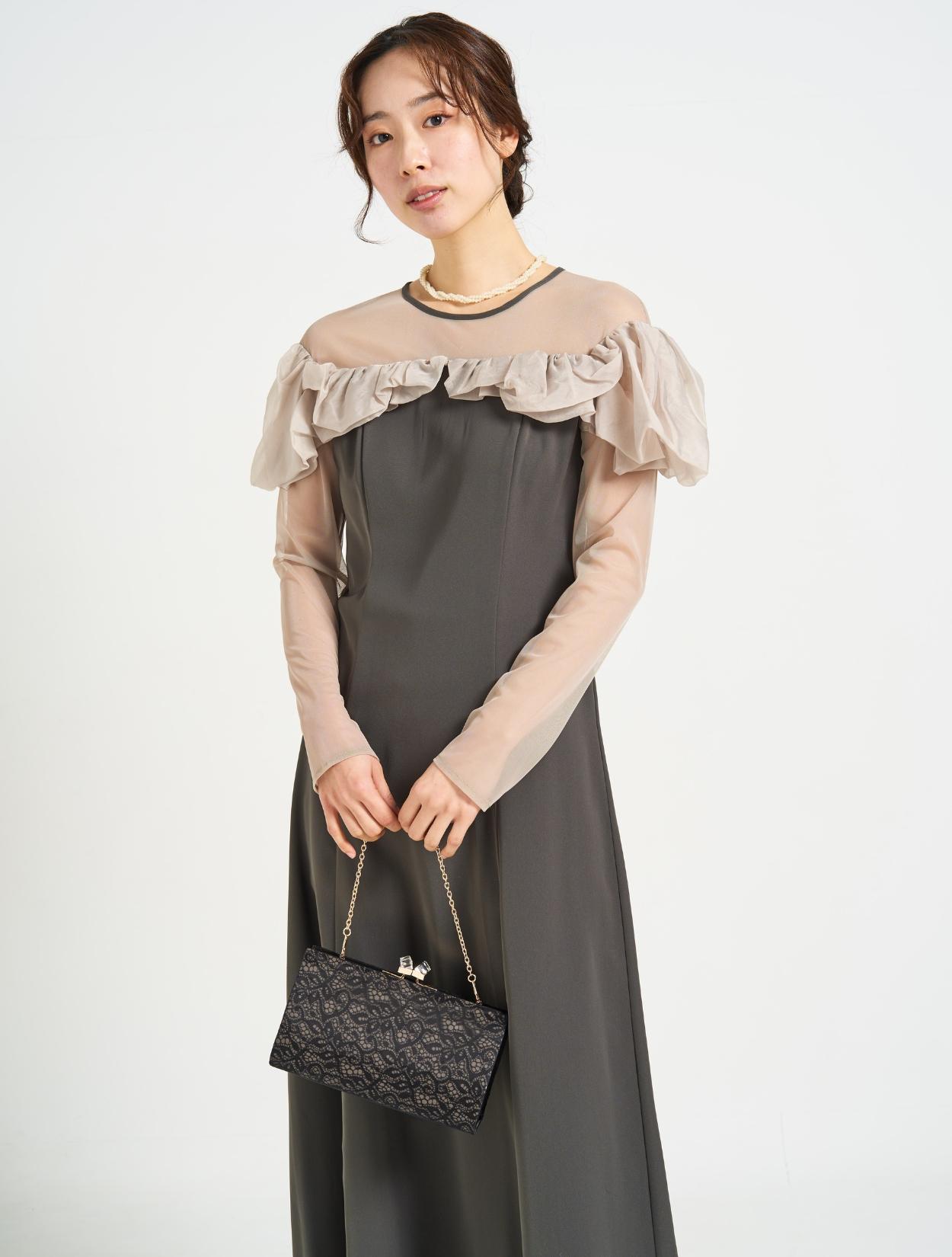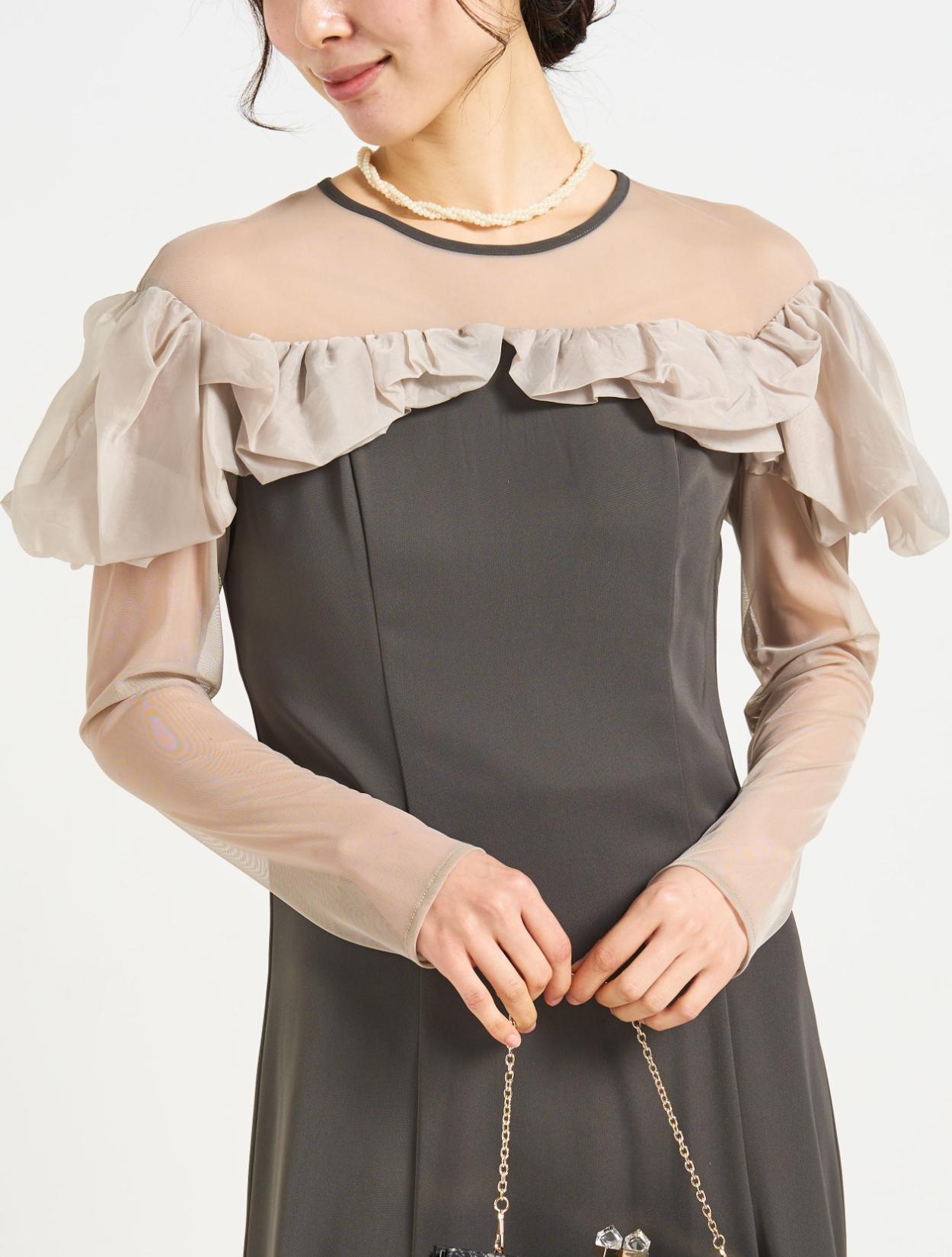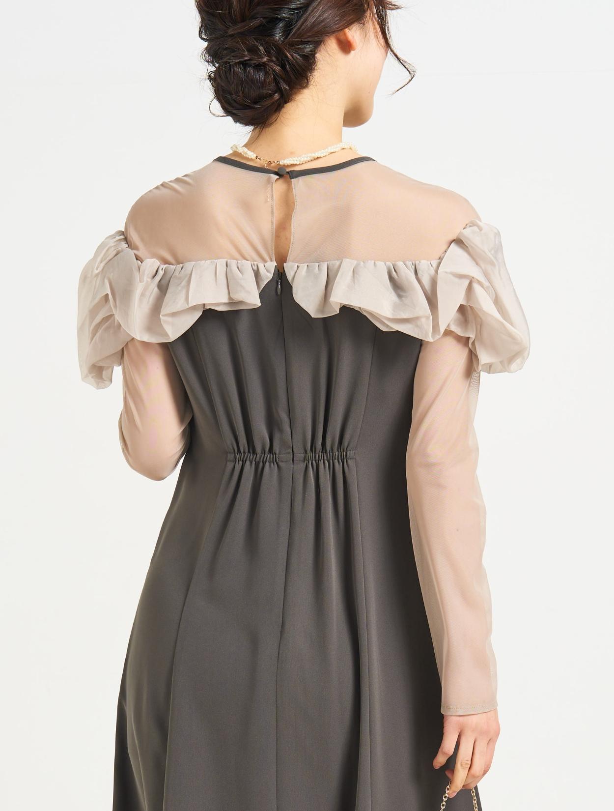 ■デコルテと袖部分はチュールを使用し、程よい透け感が綺麗な印象。