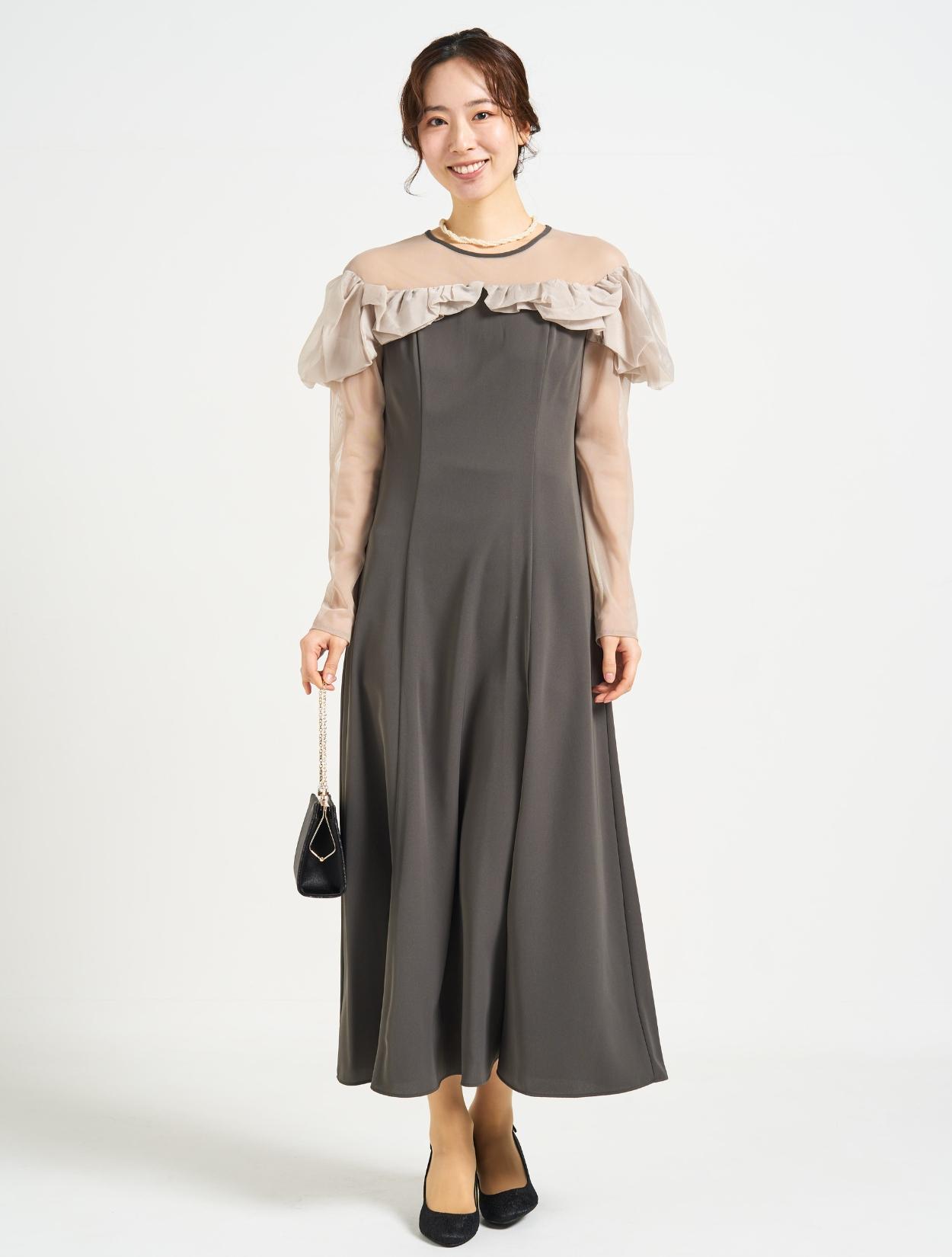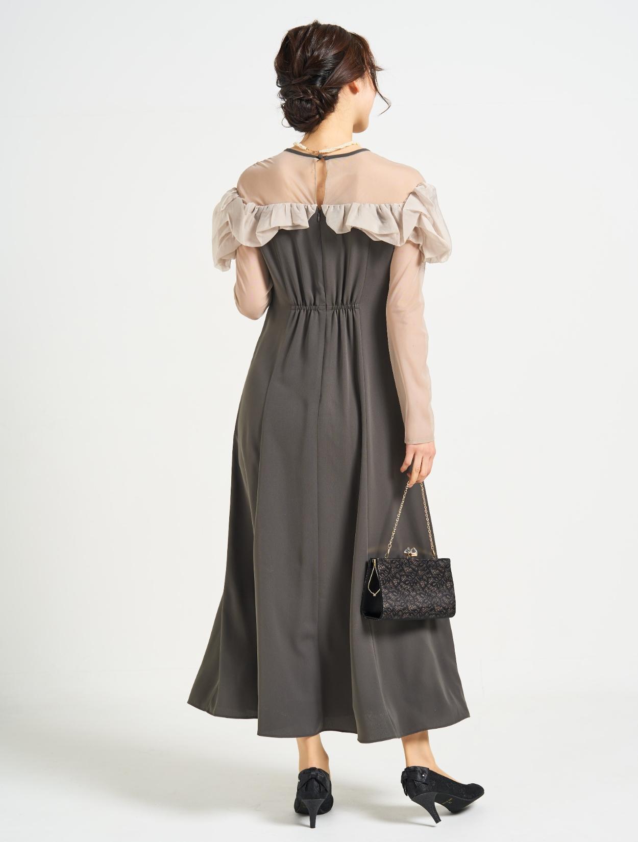 ■ランダムに摘まんだタックフリルが存在感のある1着