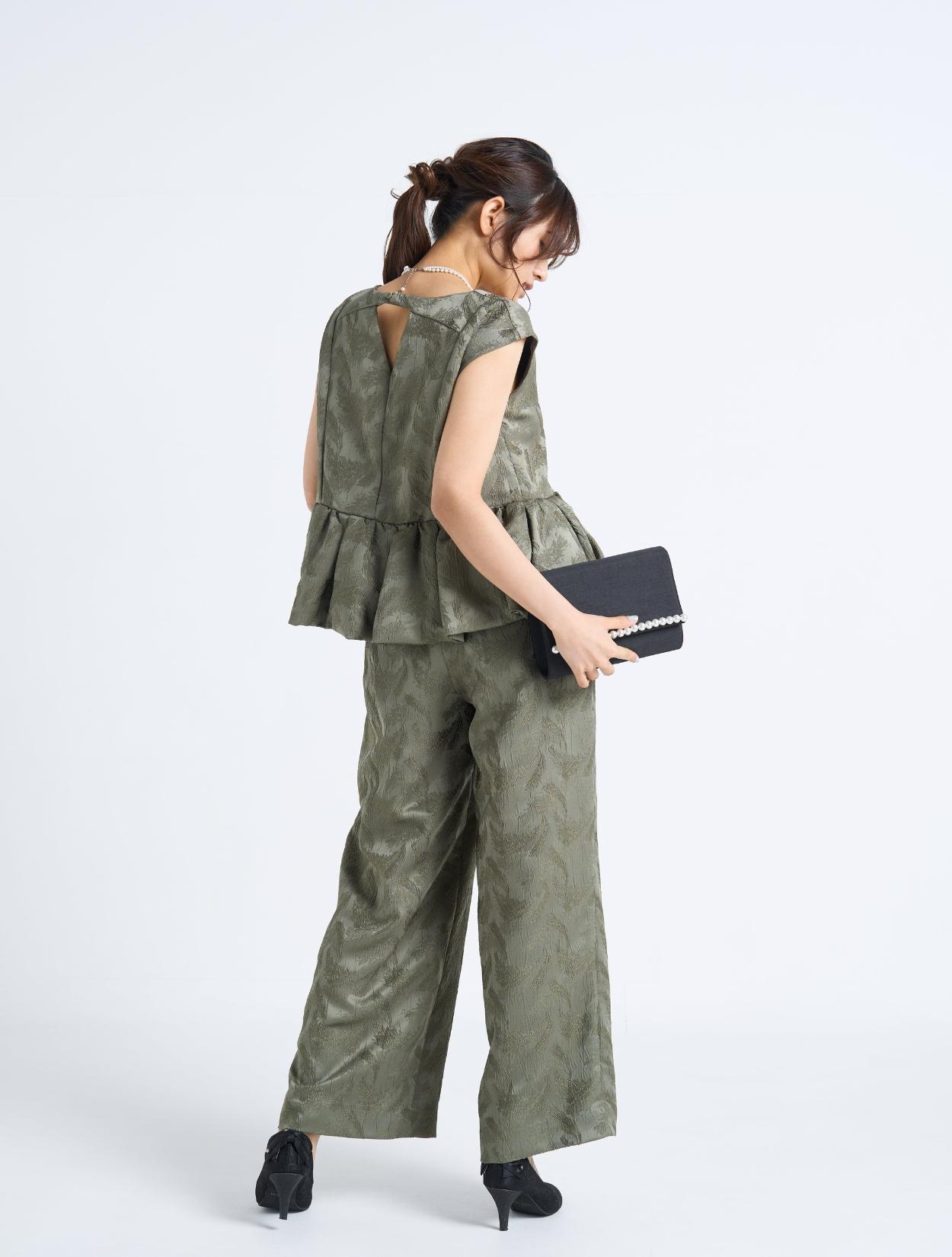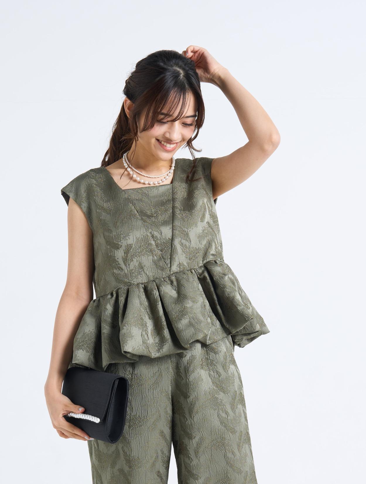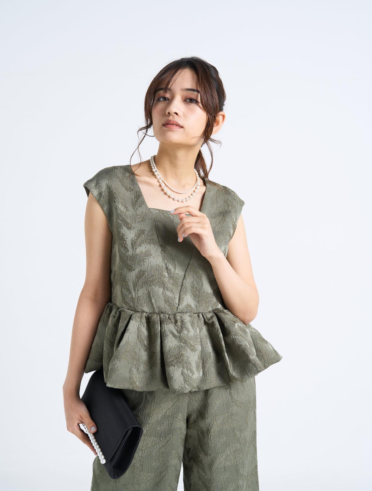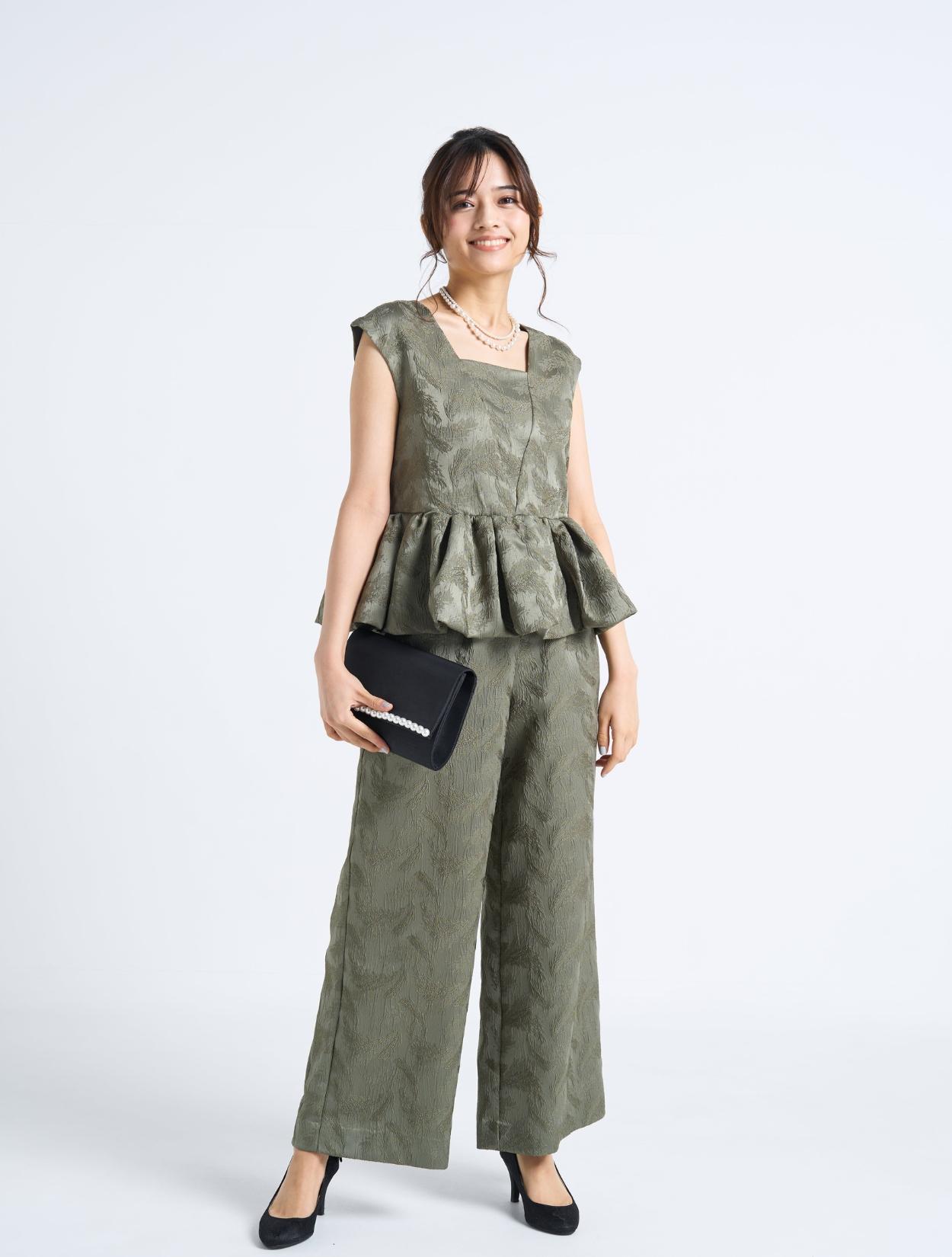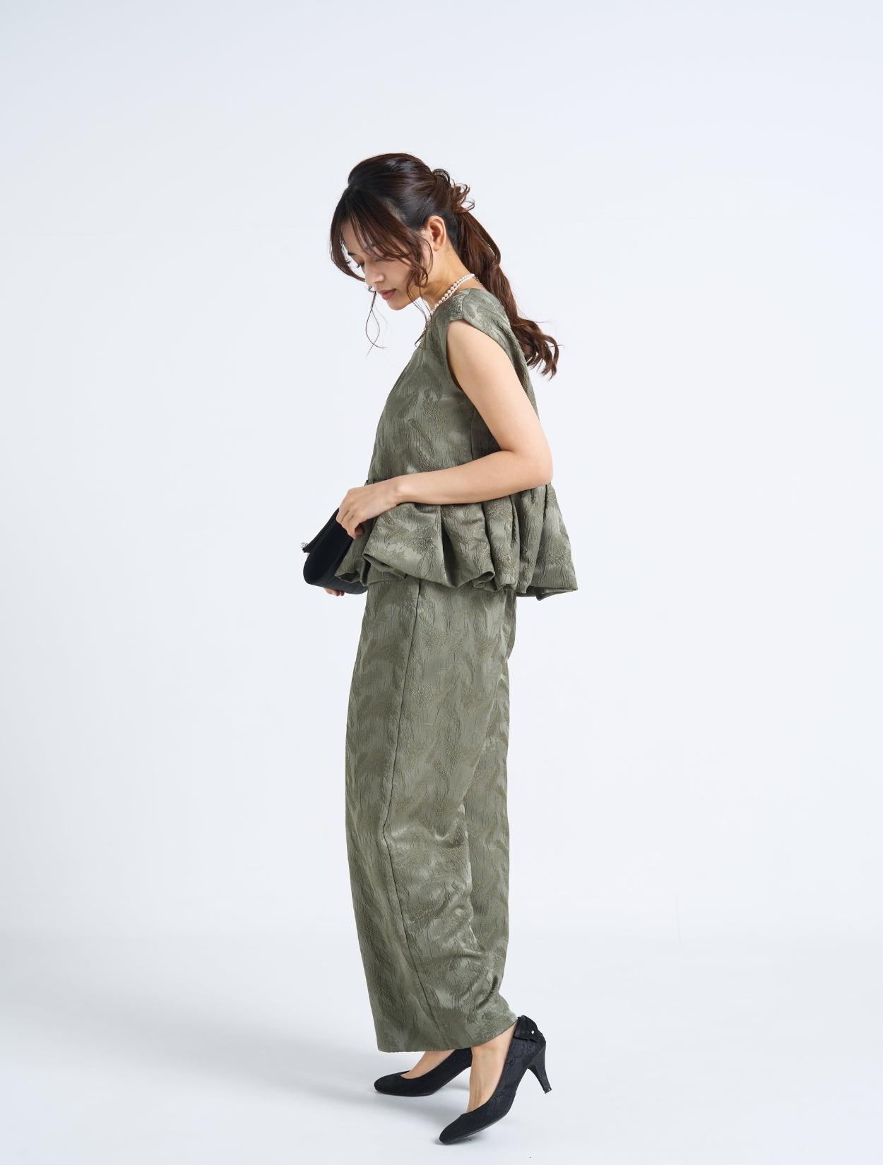 ■穏やかでファッショナブルなカーキ色のセットアップドレス。