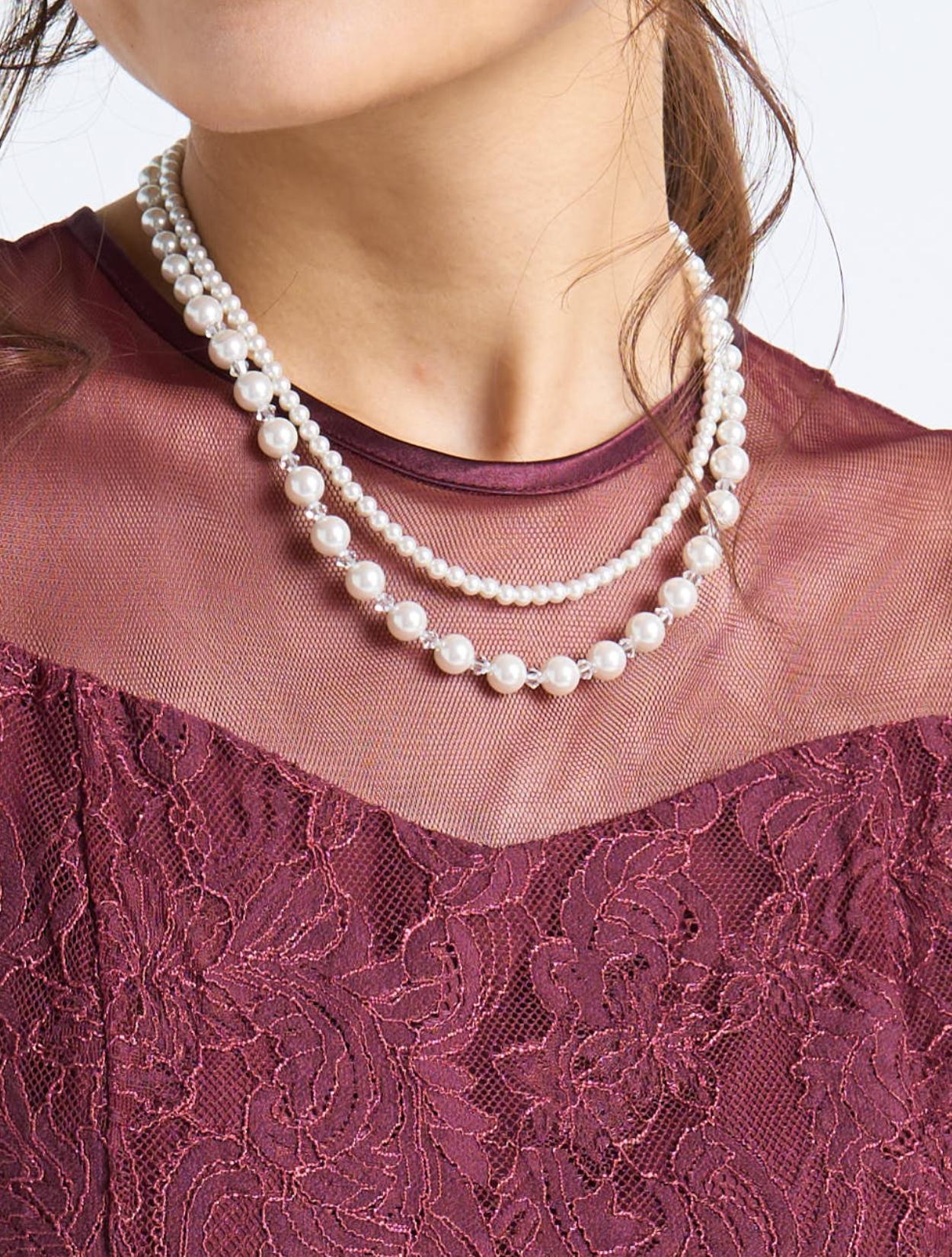 ■首元にはクリスタルビーズのネックレスが控えめに輝きます。
