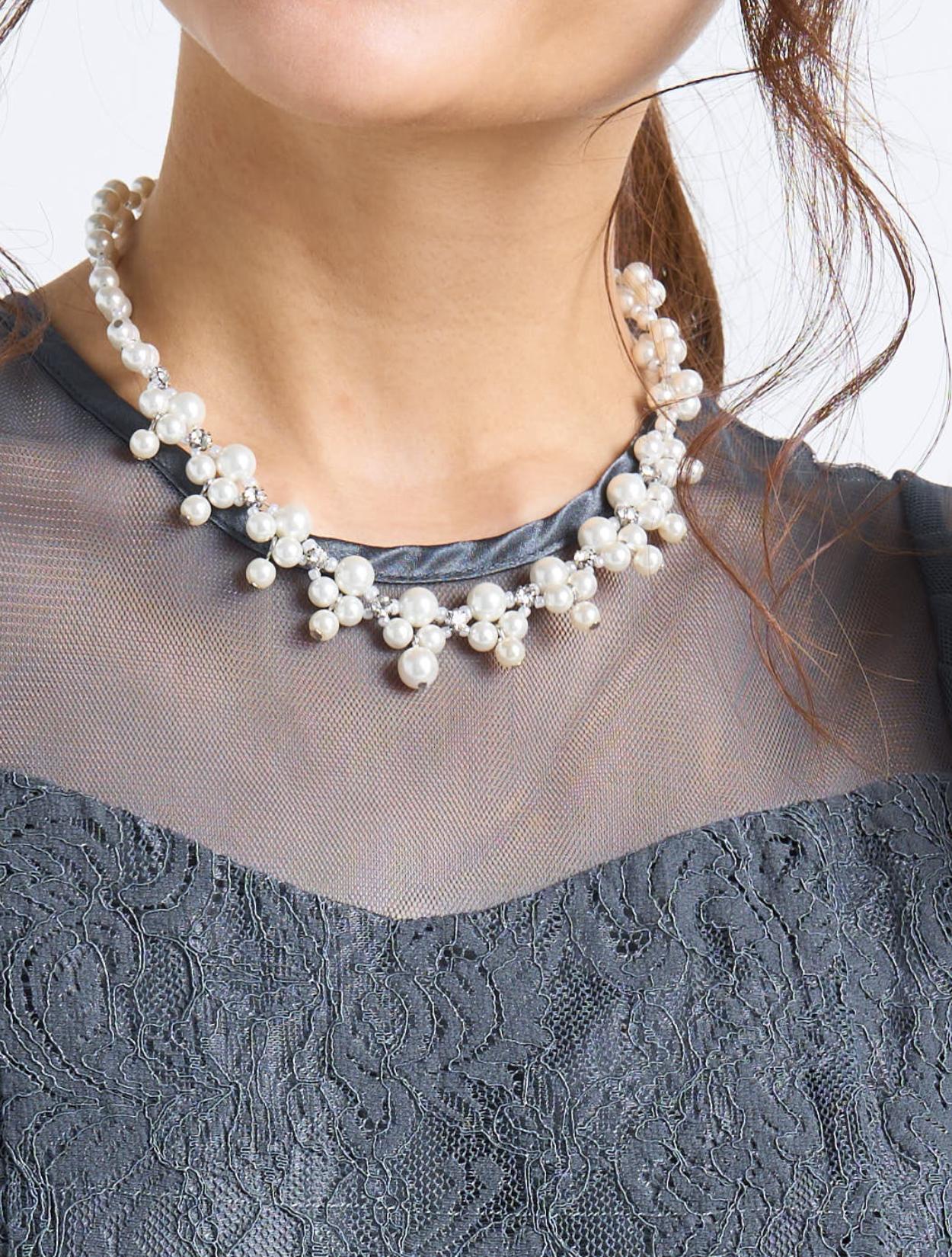 ■首元にはクリスタルビーズのネックレスが控えめに輝きます。