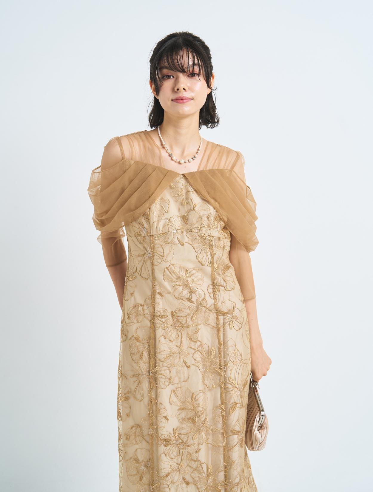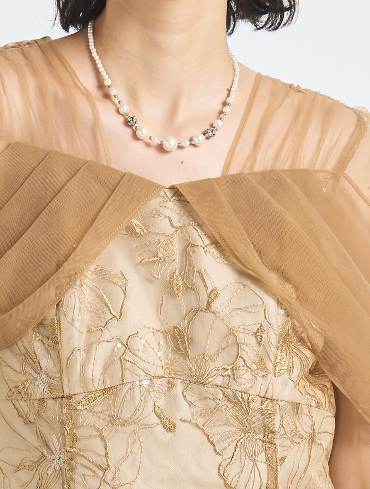 ■程よい透け感のチュールがデコルテ部分を綺麗に見せます