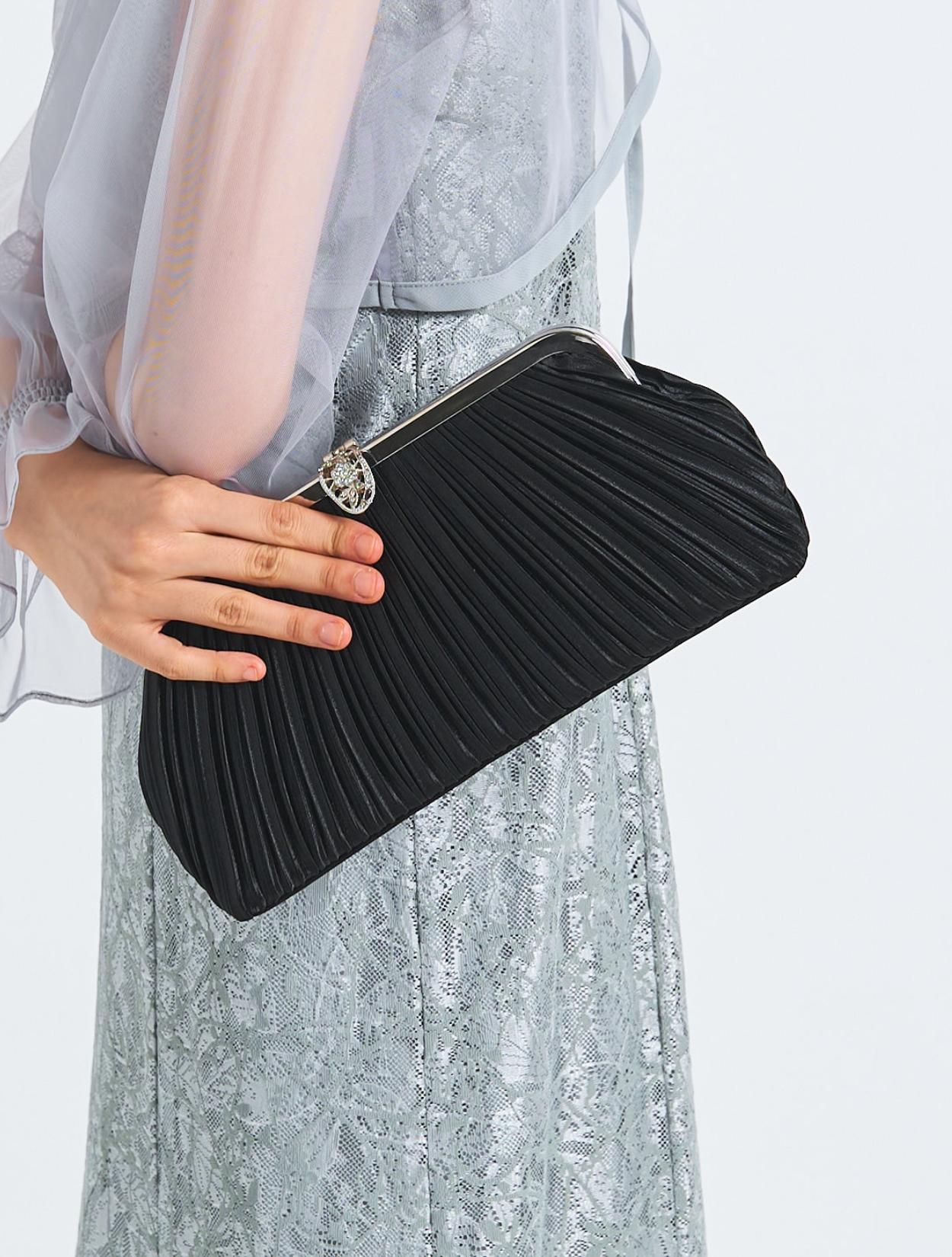 ■淡いカラーのドレスにブラックの小物で締まりを加えたコーディネート