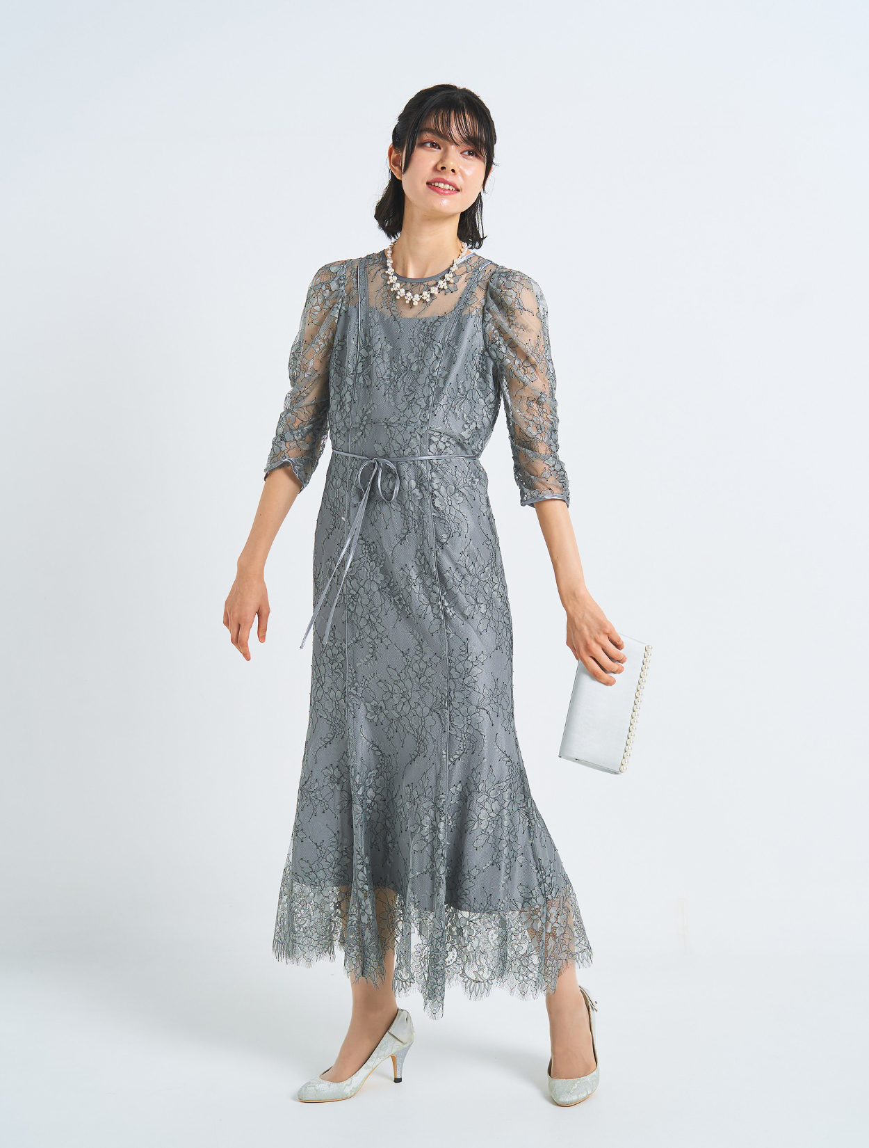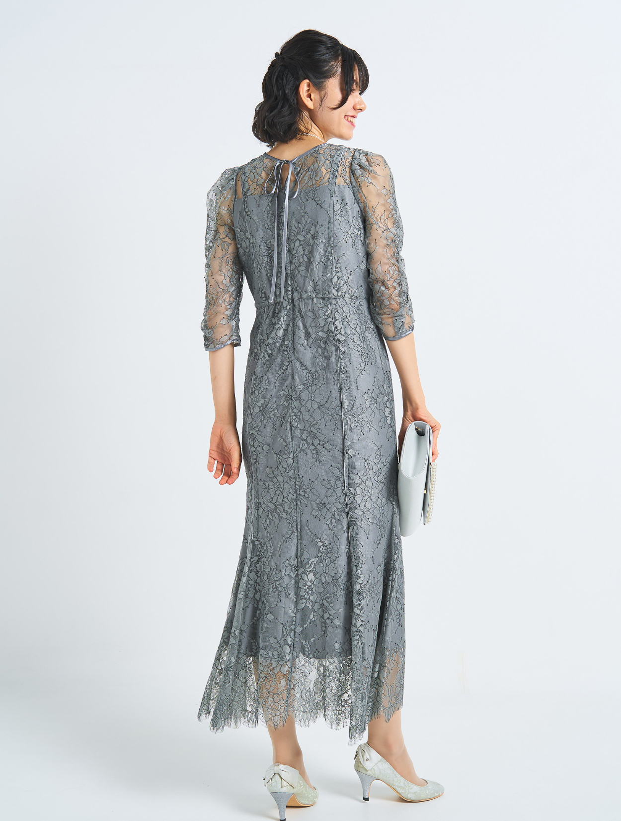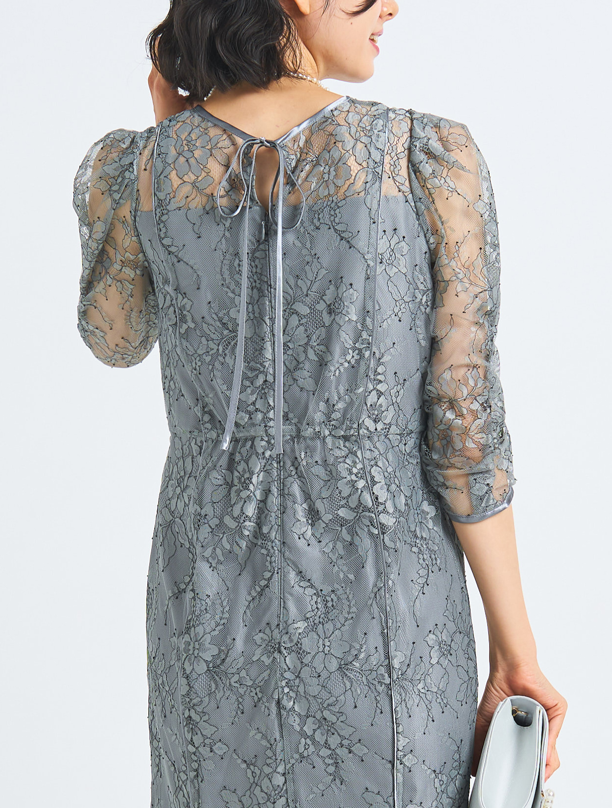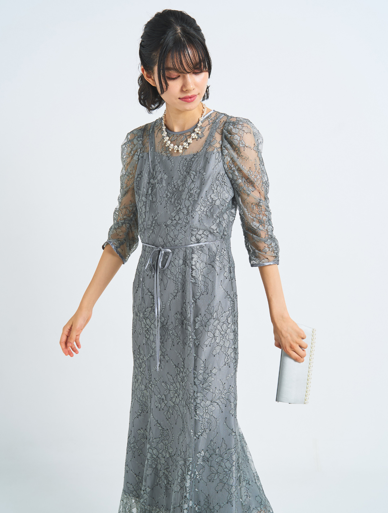 ■マーメイドラインとギャザースリーブがフェミニンなドレス