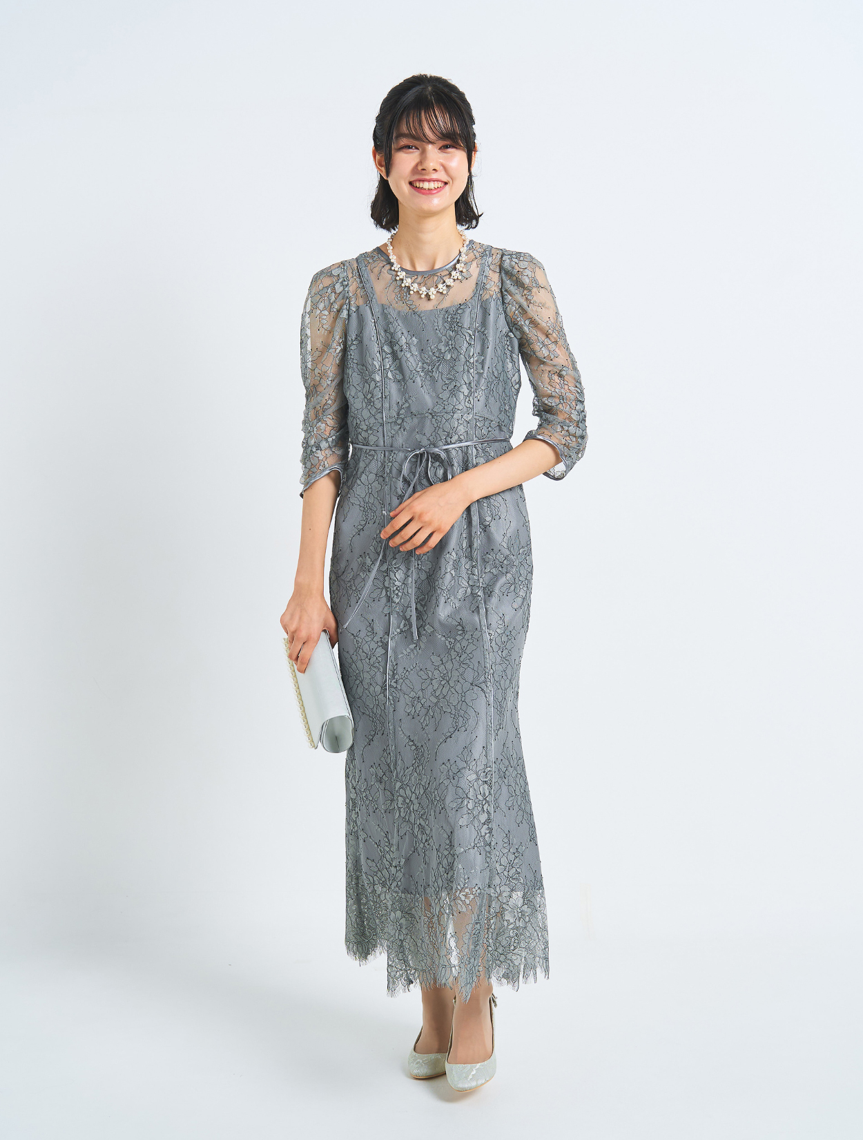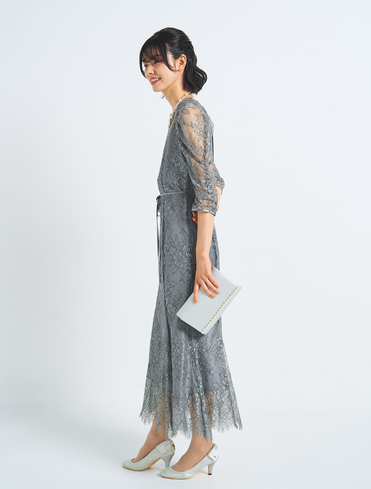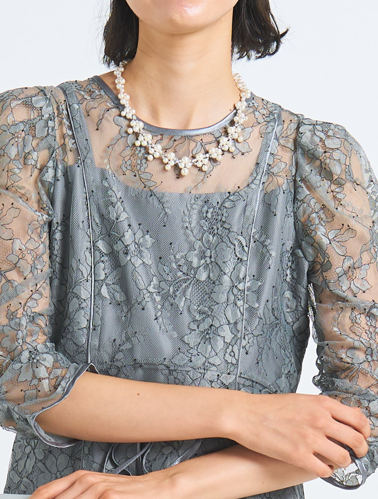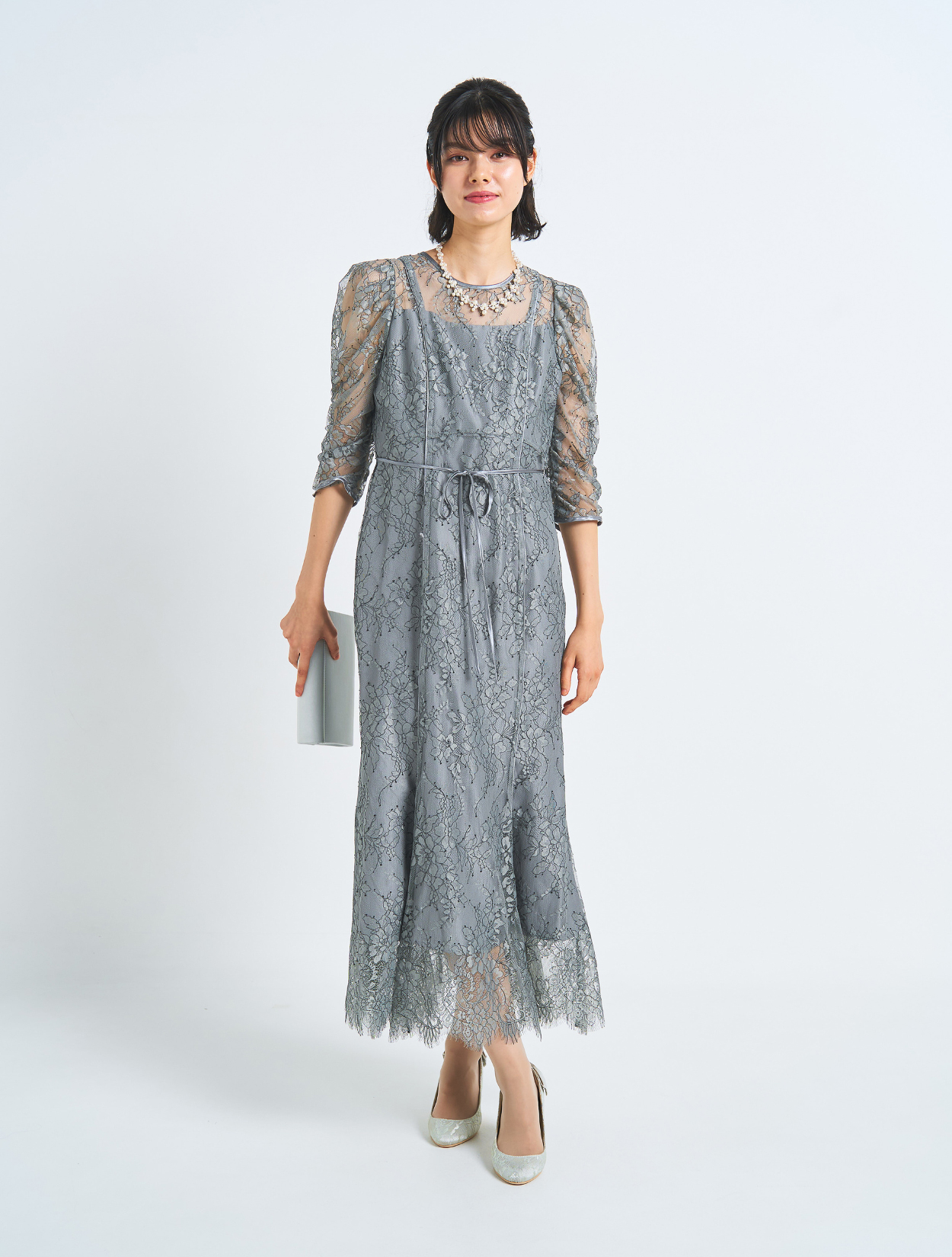 ■マーメイドラインとギャザースリーブがフェミニンなドレス