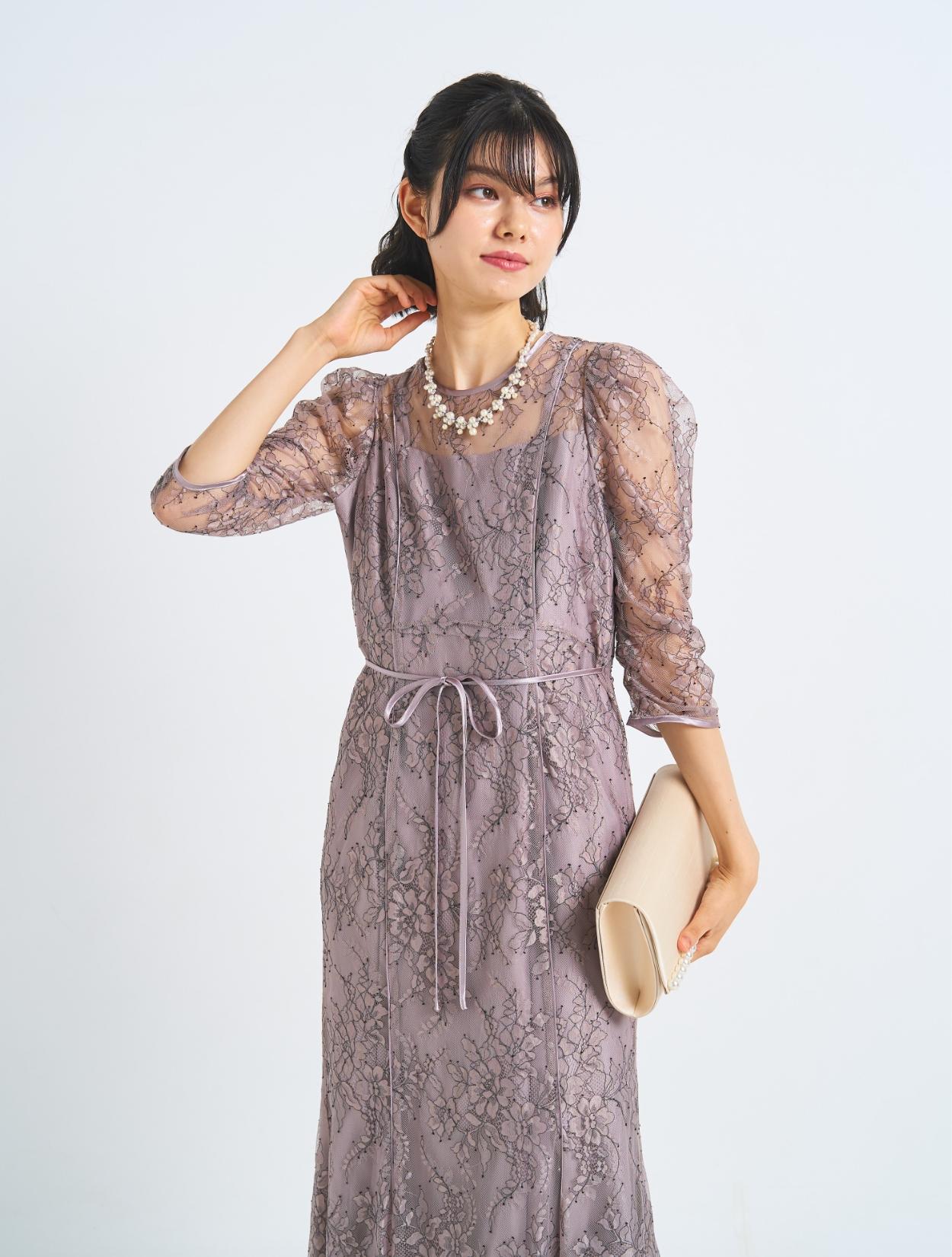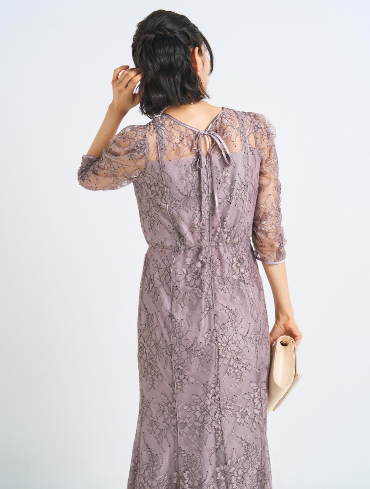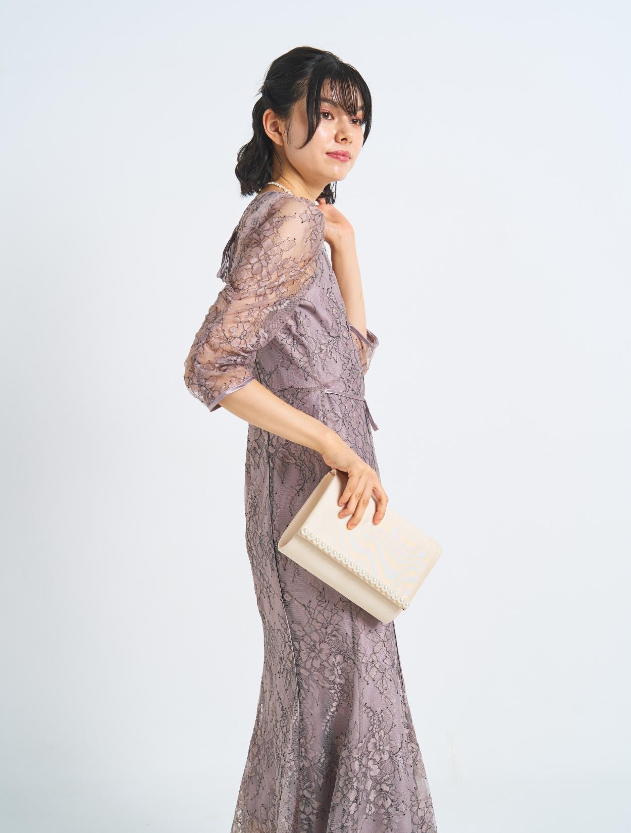 ■マーメイドラインとギャザースリーブがフェミニンなドレス