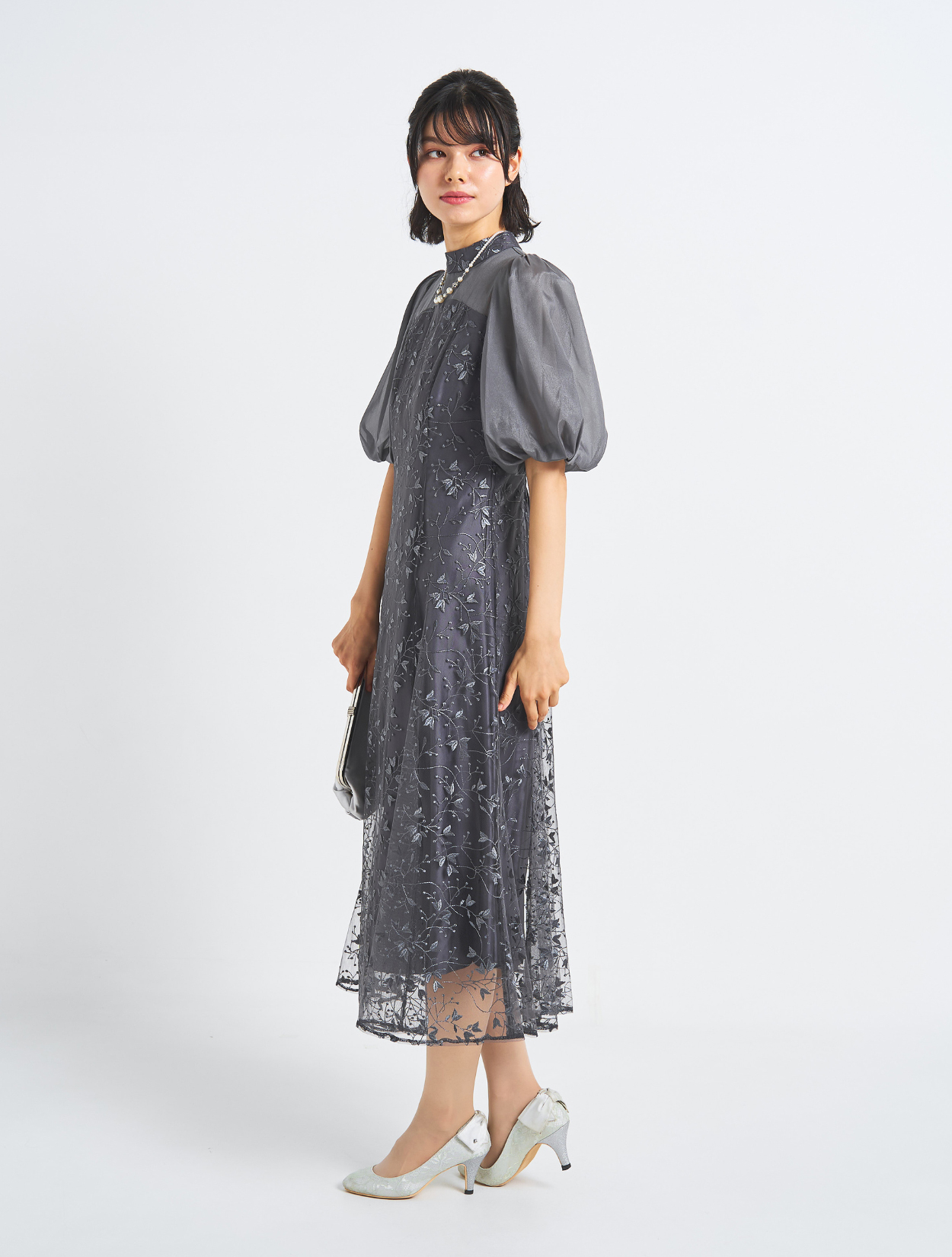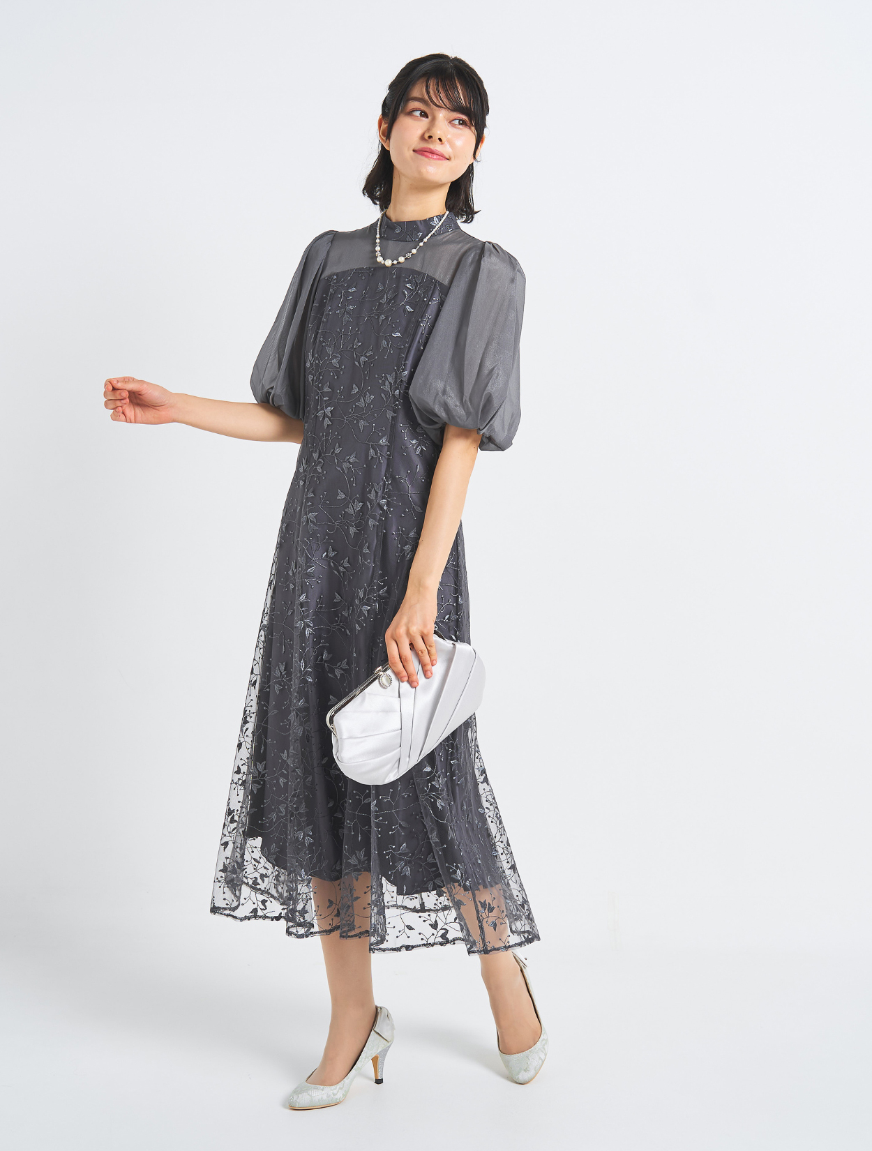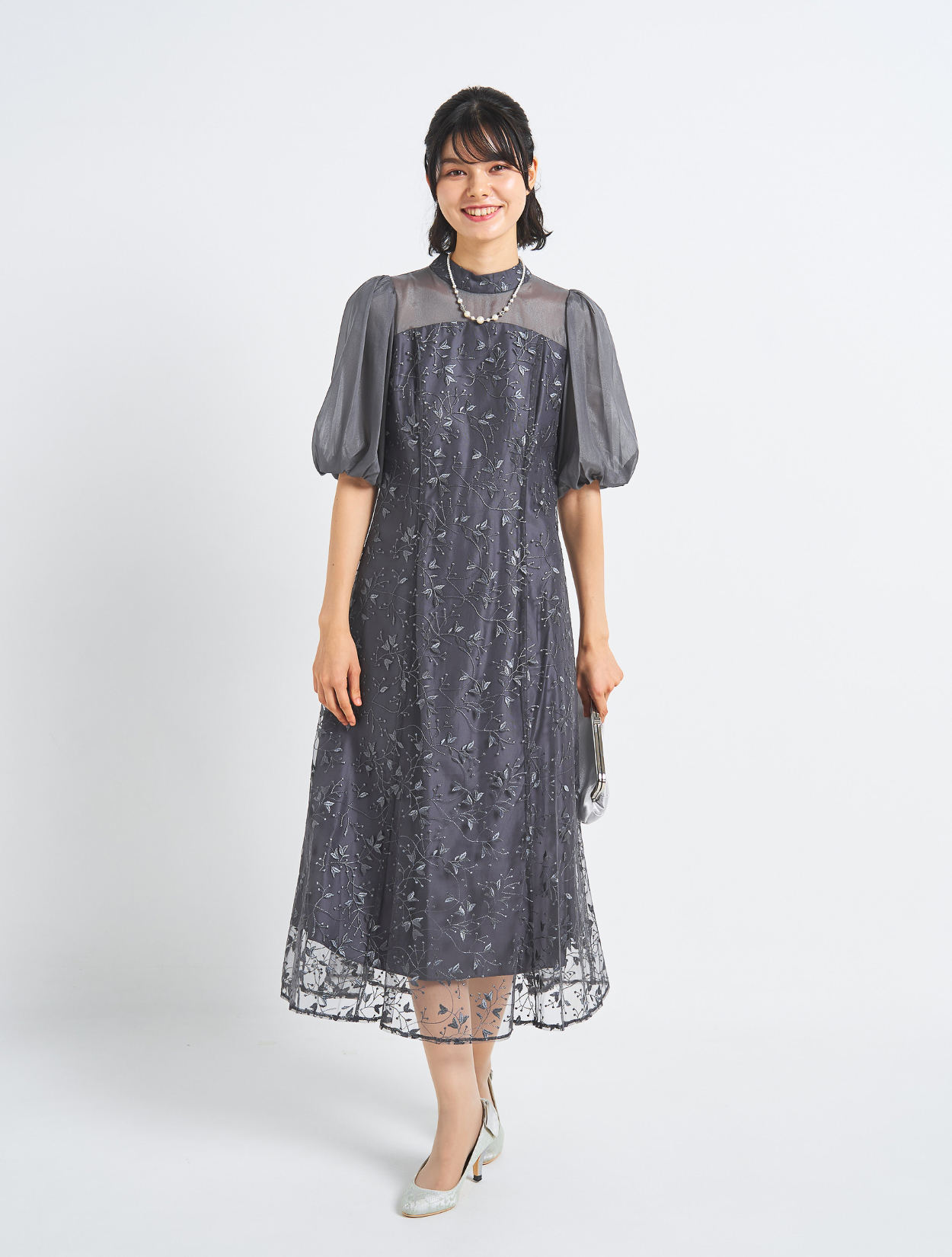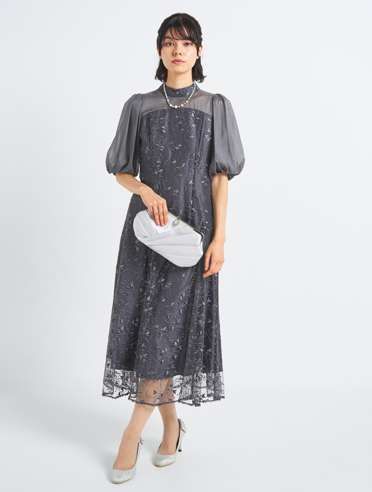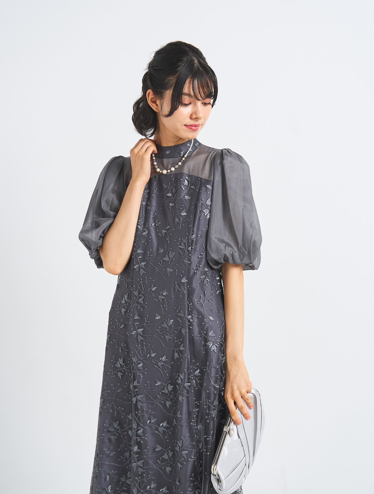 ■繊細なフラワー刺繍が可愛らしいフレアドレス