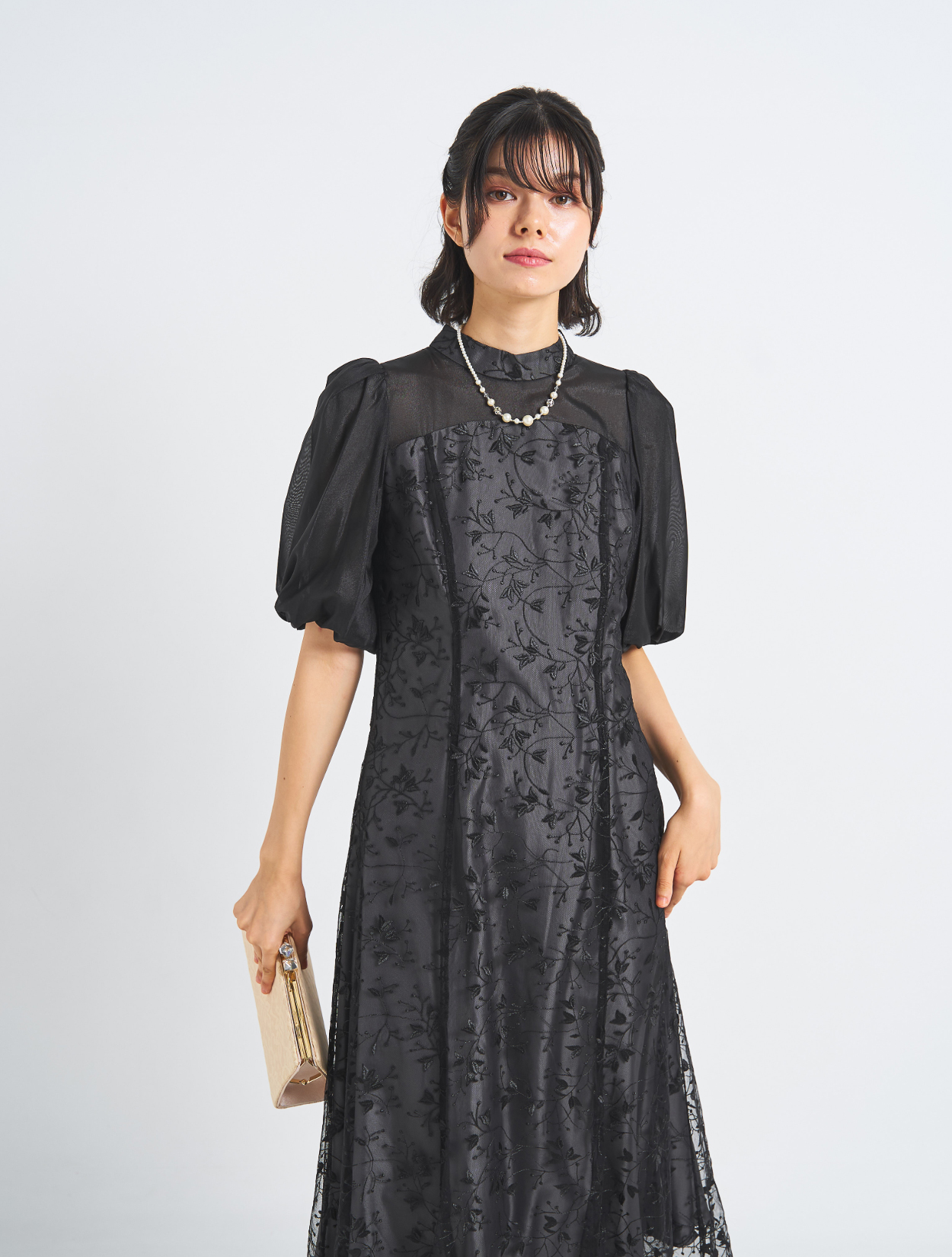 ■繊細なフラワー刺繍が可愛らしいフレアドレス