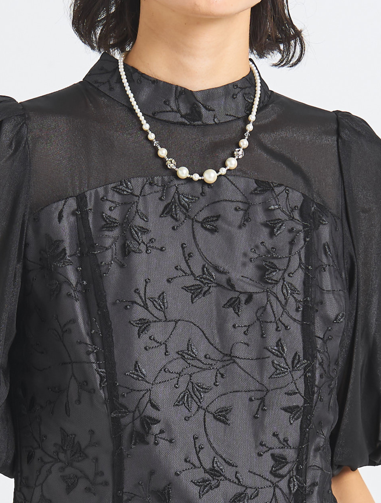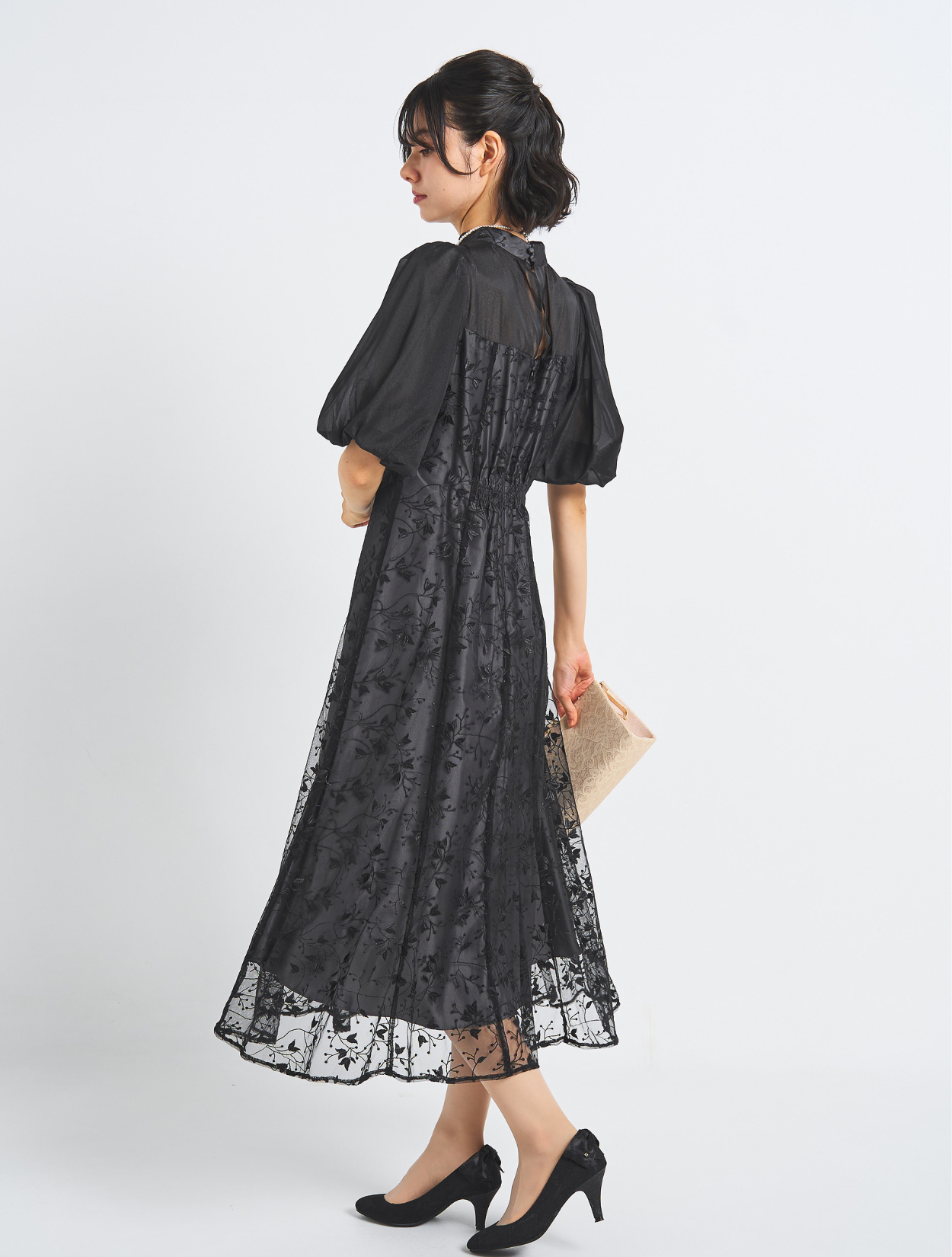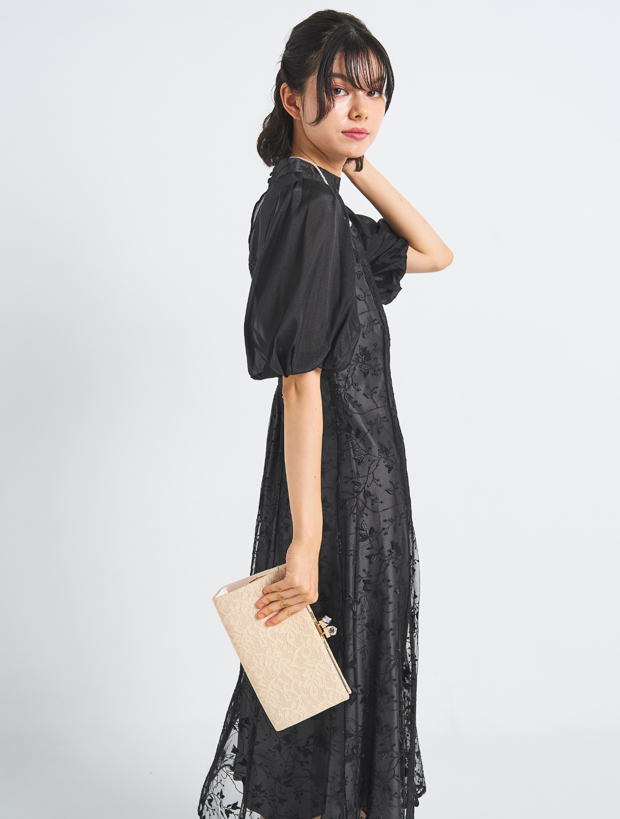 ■ワンピース部分には光沢感があり、ブラックドレスですが軽やかな印象に。
